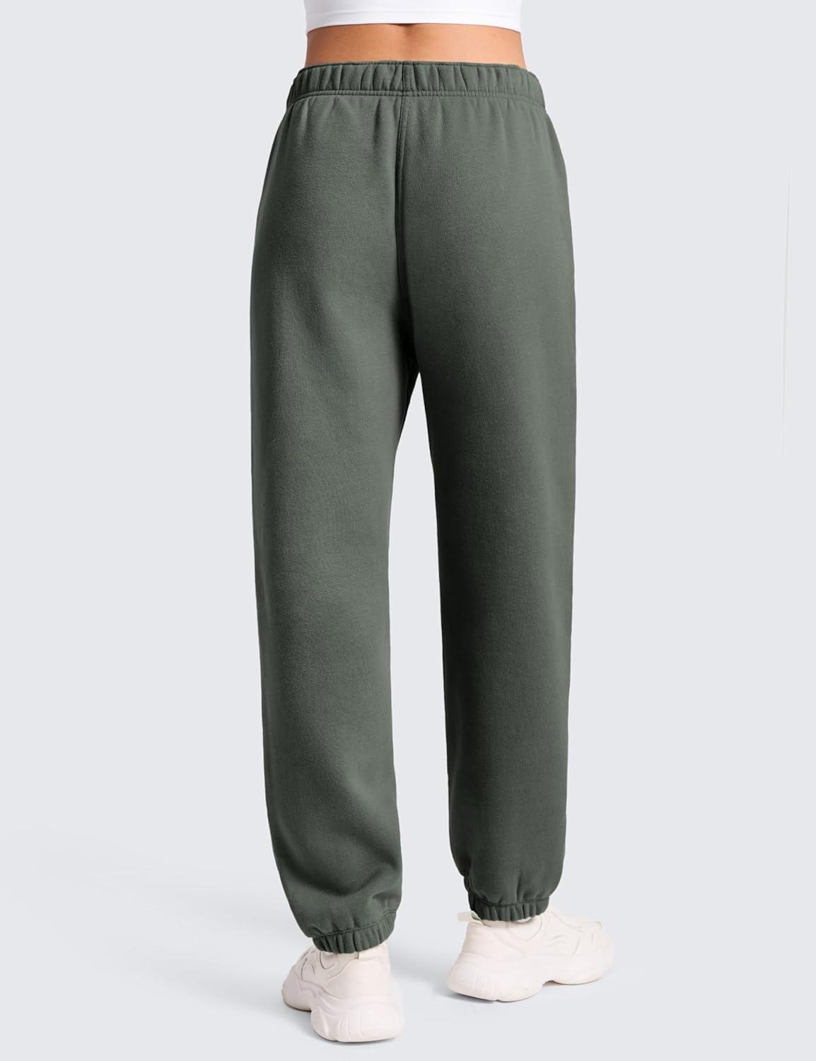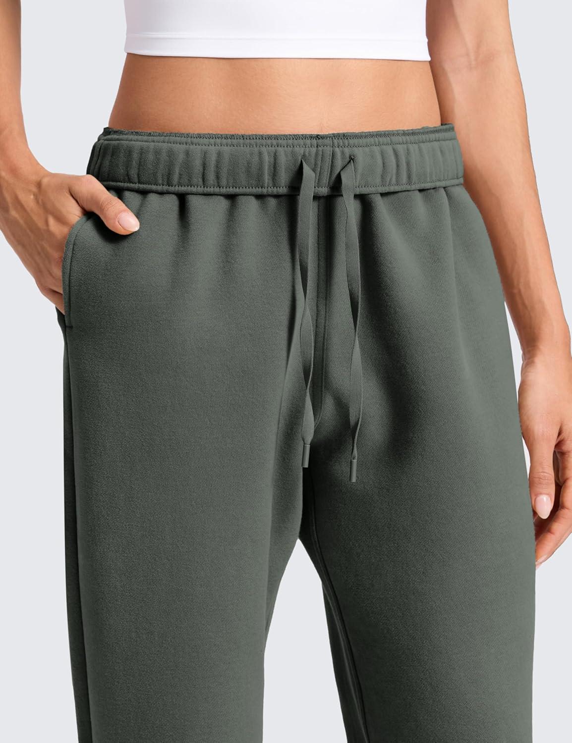 CRZ YOGA Cotton Fleece Lined Jogger Sweatpants Women 28" - Casual Lounge Travel Pants with Pockets Winter Warm(Grey Sage)