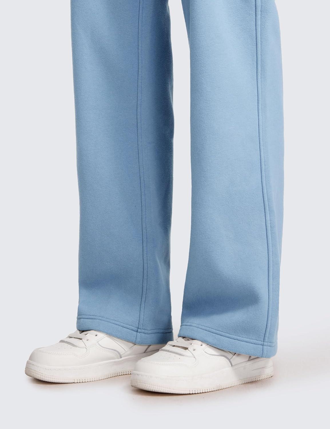 CRZ YOGA Cotton Fleece Lined Sweatpants Women 28″/30″/32″ – Straight Leg Casual Lounge Pants with Pockets Winter Warm(Cambric Blue)