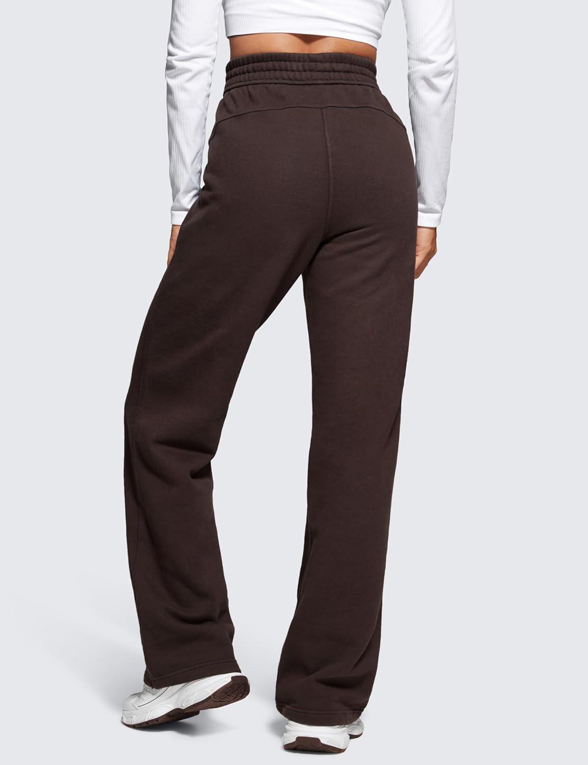 CRZ YOGA Cotton Fleece Lined Sweatpants Women 28"/30"/32" - Straight Leg Casual Lounge Pants with Pockets Winter Warm(Hot Fudge Brown)