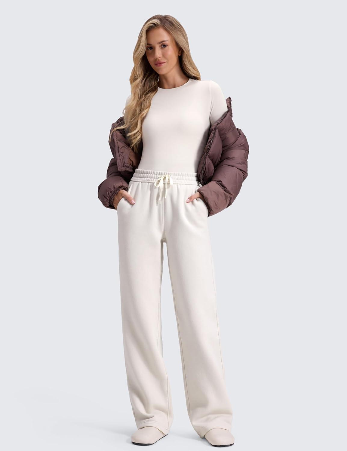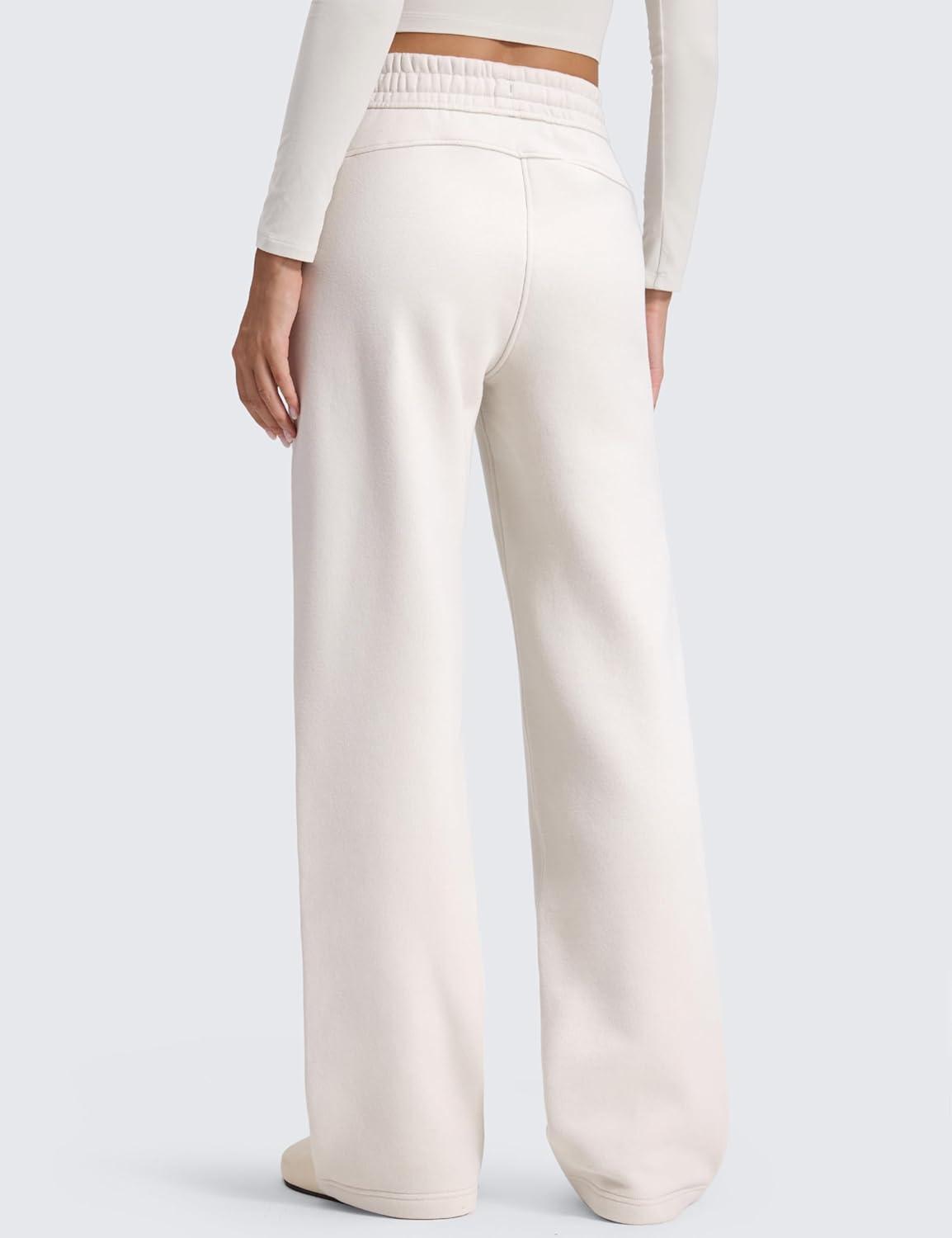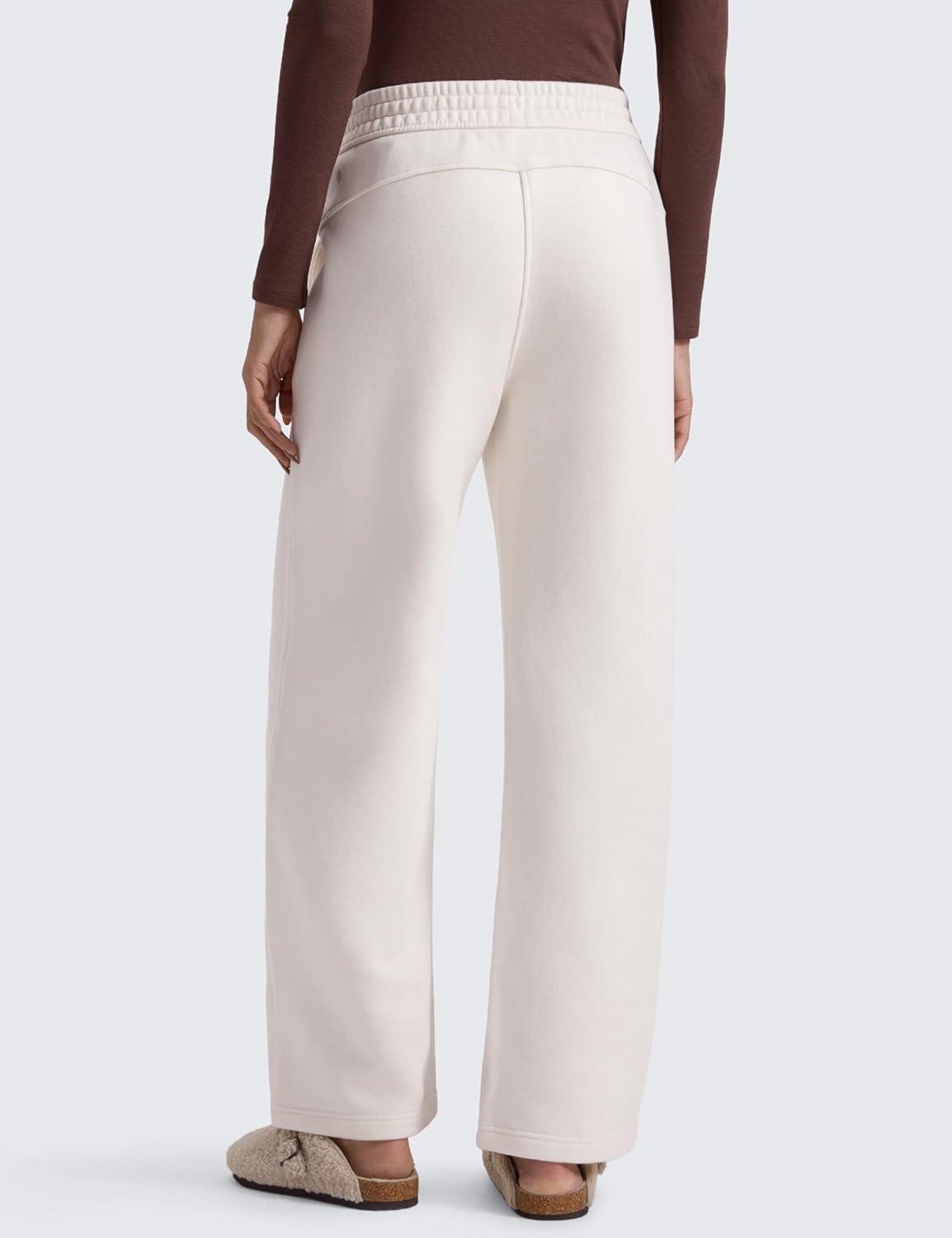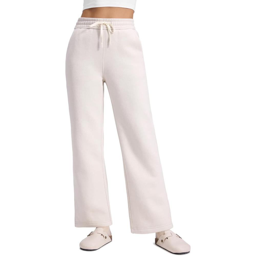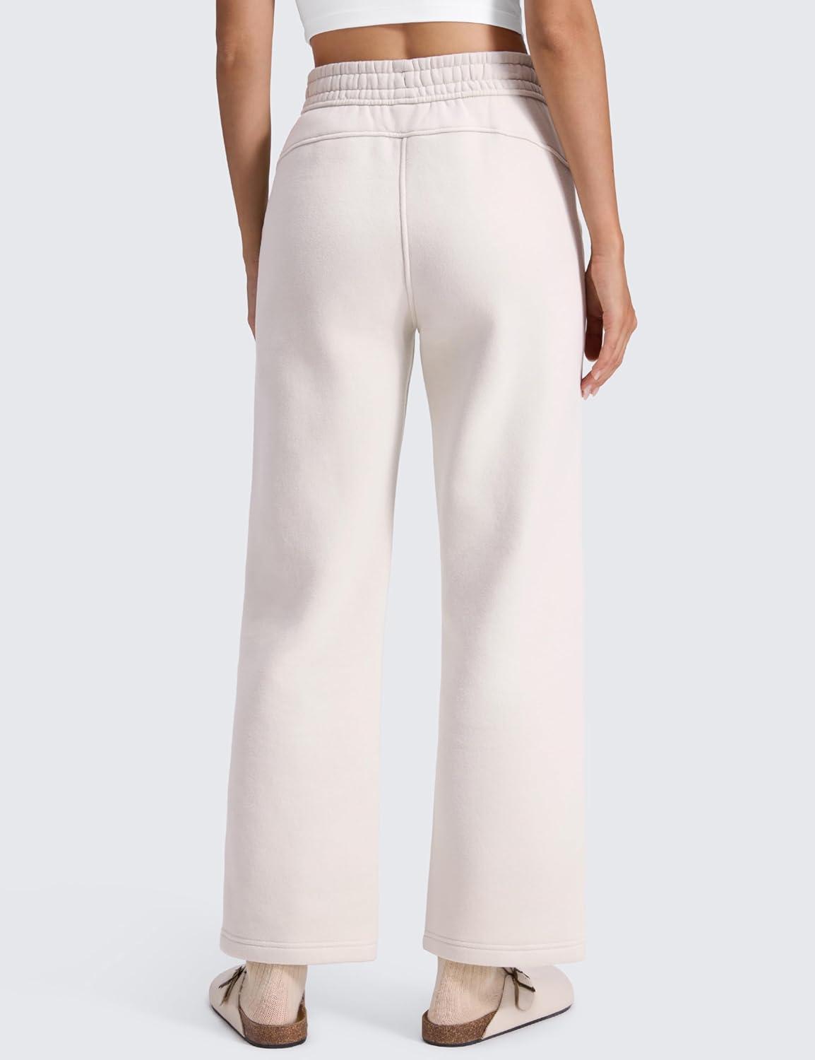 imageCRZ YOGA Cotton Fleece Lined Sweatpants Women 28quot30quot32quot  Straight Leg Casual Lounge Pants with Pockets Winter WarmMilky White Bone