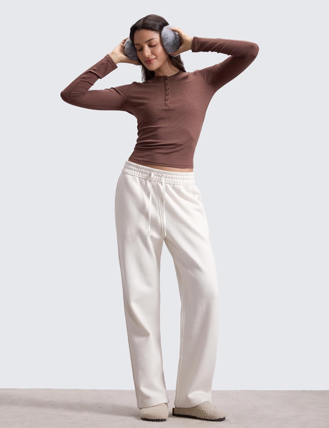 CRZ YOGA Cotton Fleece Lined Sweatpants Women 28"/30"/32" - Straight Leg Casual Lounge Pants with Pockets Winter Warm(Milky White (Bone))