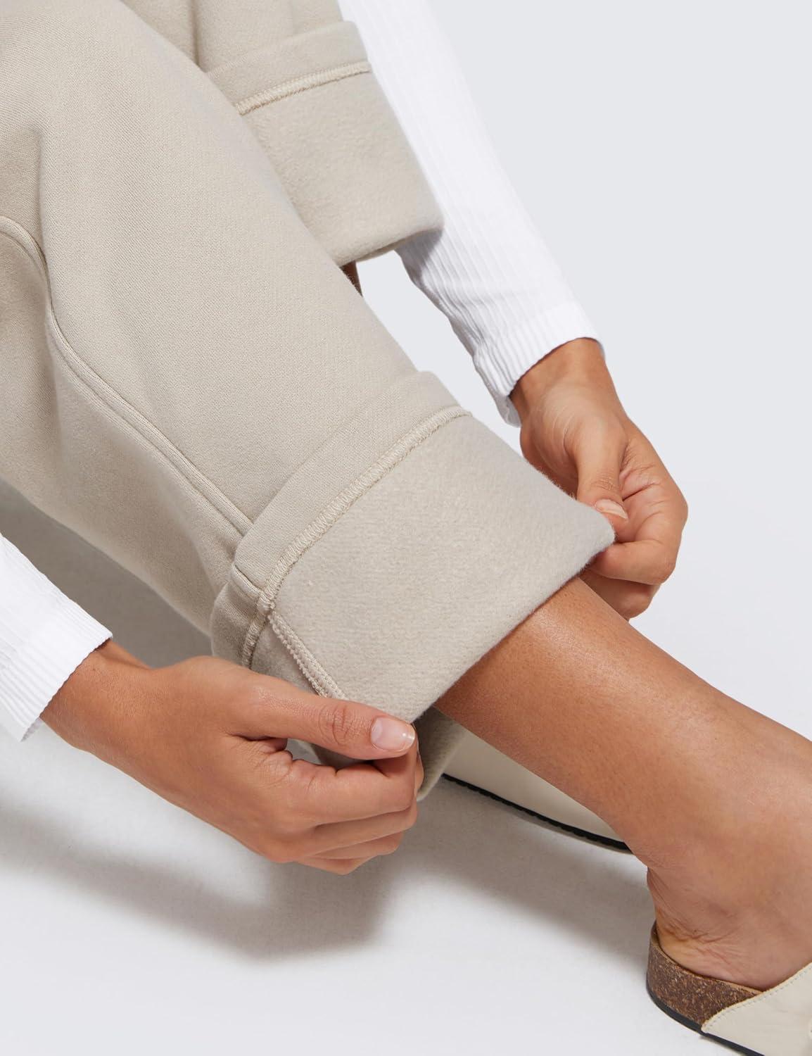 CRZ YOGA Cotton Fleece Lined Sweatpants Women 28"/30"/32" - Straight Leg Casual Lounge Pants with Pockets Winter Warm(Mojave Tan)