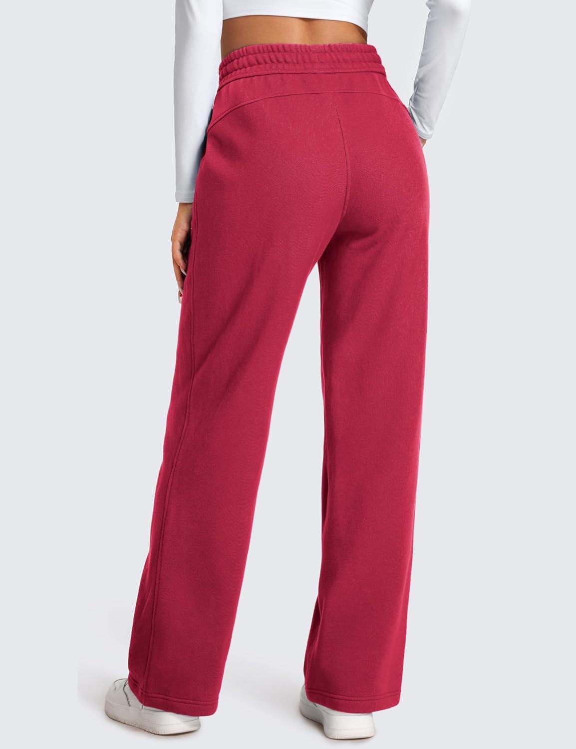 CRZ YOGA Cotton Fleece Lined Sweatpants Women 28″/30″/32″ – Straight Leg Casual Lounge Pants with Pockets Winter Warm(Pomegranate)