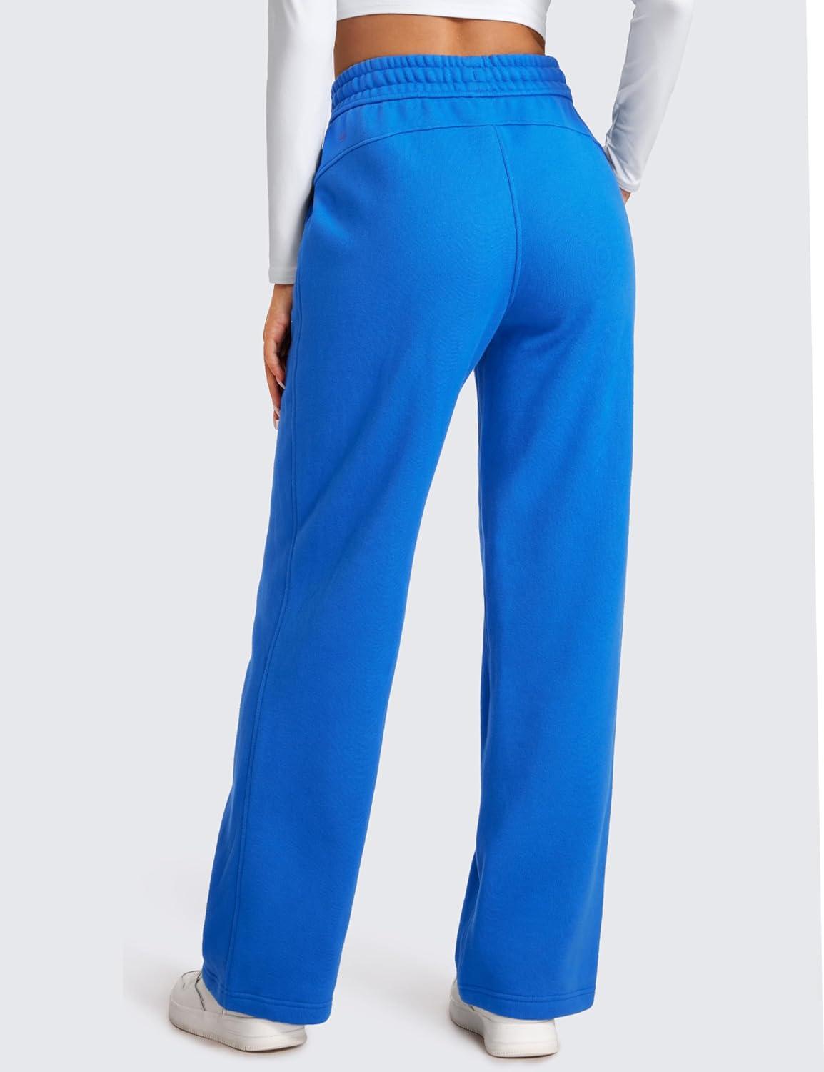 CRZ YOGA Cotton Fleece Lined Sweatpants Women 28″/30″/32″ – Straight Leg Casual Lounge Pants with Pockets Winter Warm(Sparkle Blue)