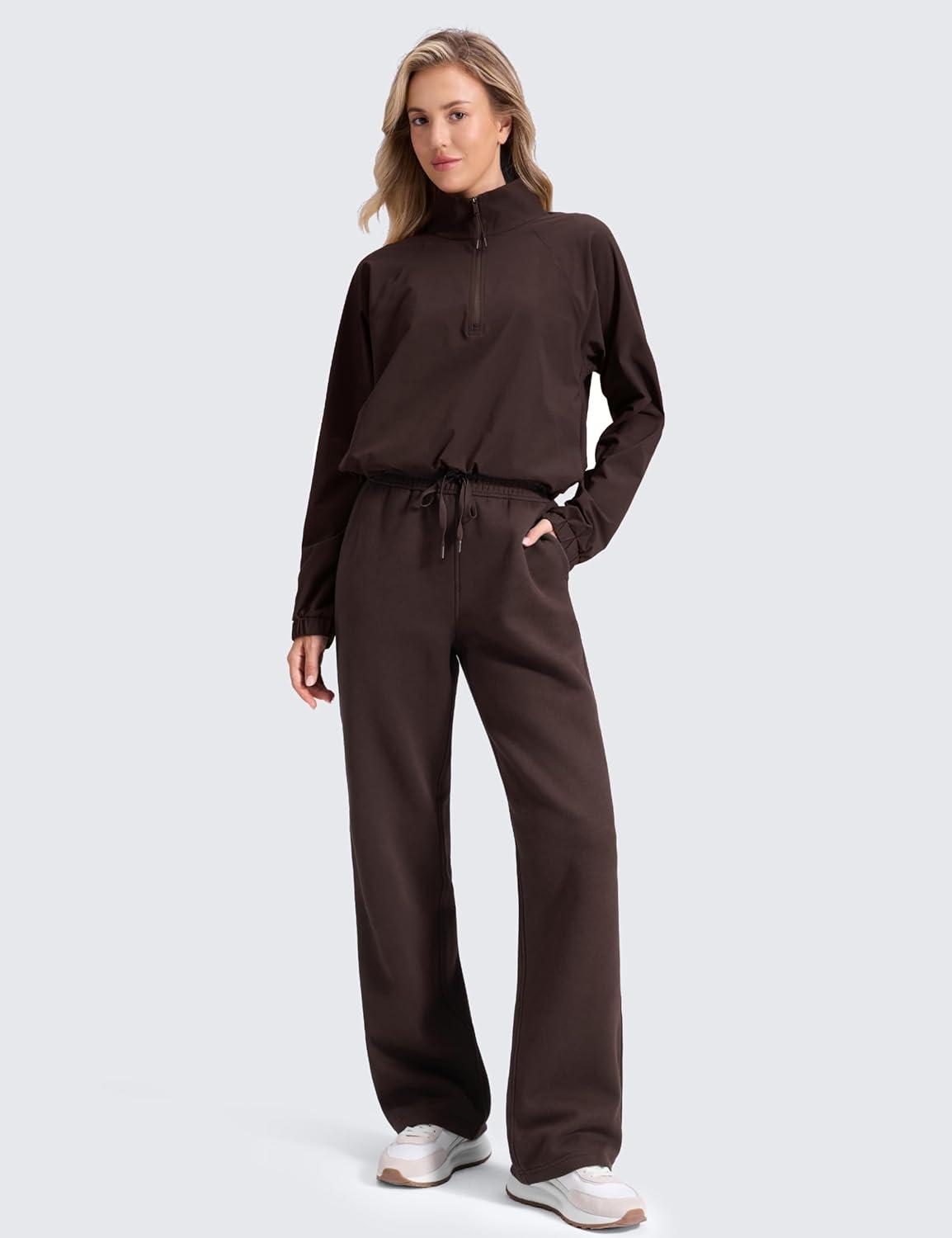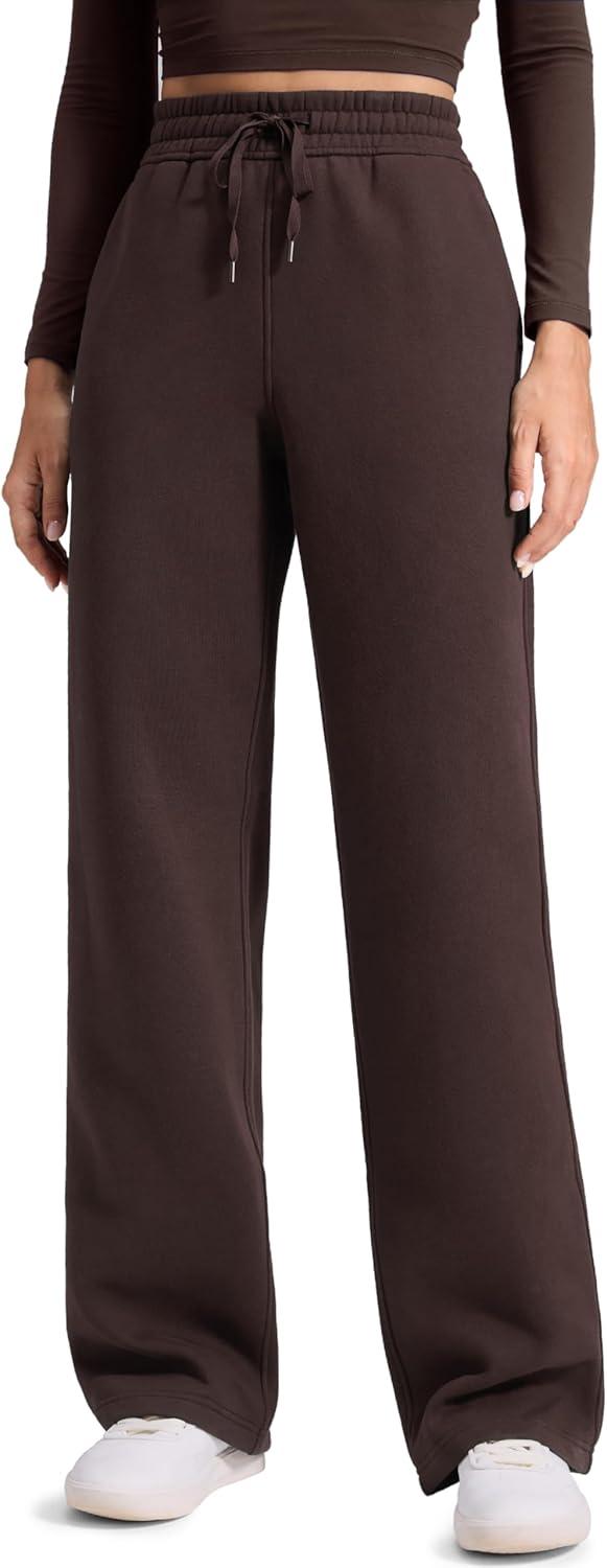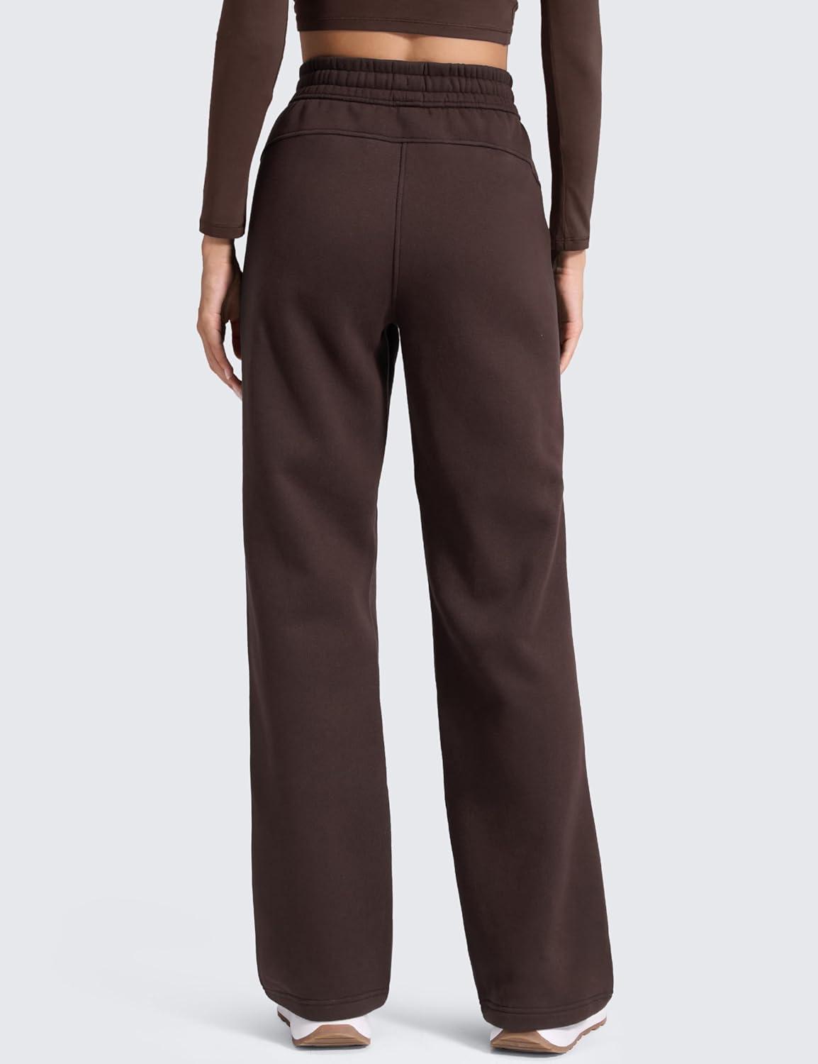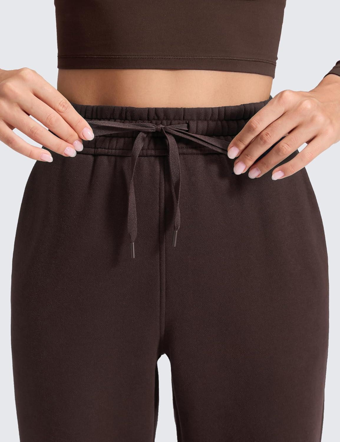 CRZ YOGA Cotton Fleece Lined Sweatpants Women 28″/30″ Straight Leg Casual Lounge Sweat Pants for Women(Hot Fudge Brown)