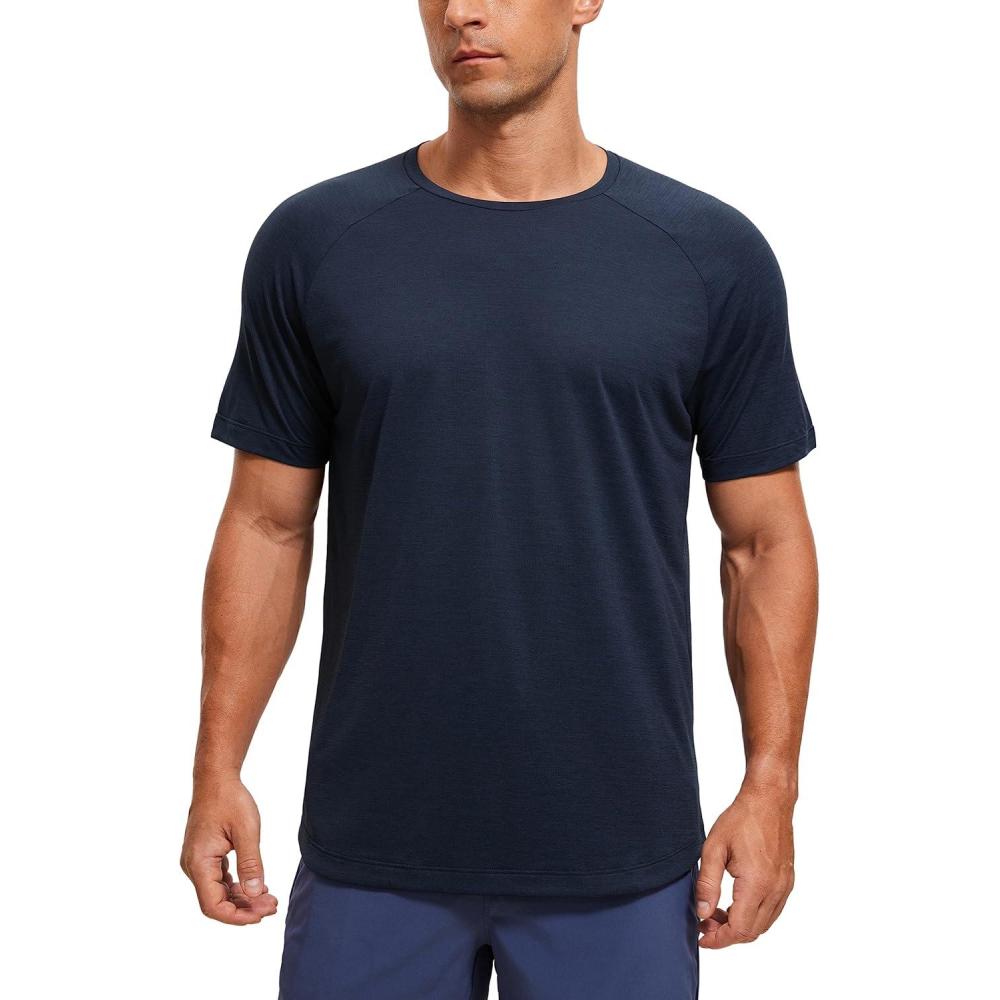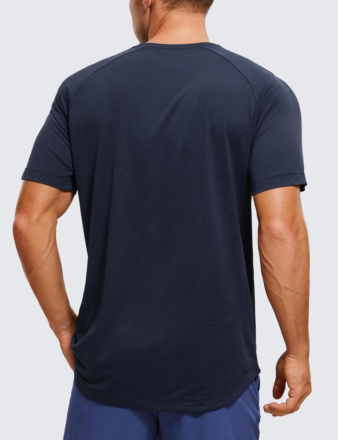 CRZ YOGA Crewneck Workout Shirts for Men – Quick Dry Running Athletic T-Shirts Lightweight Basic Tops(Navy-heather)