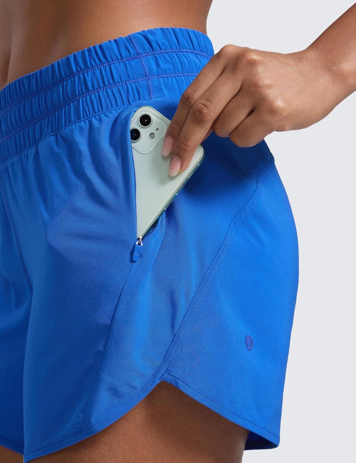 CRZ YOGA Dolphin Athletic Shorts for Women 5″ – High Waisted Quick Dry for Running Workout Gym Track with Zip Pocket(Stelindigo Blue)