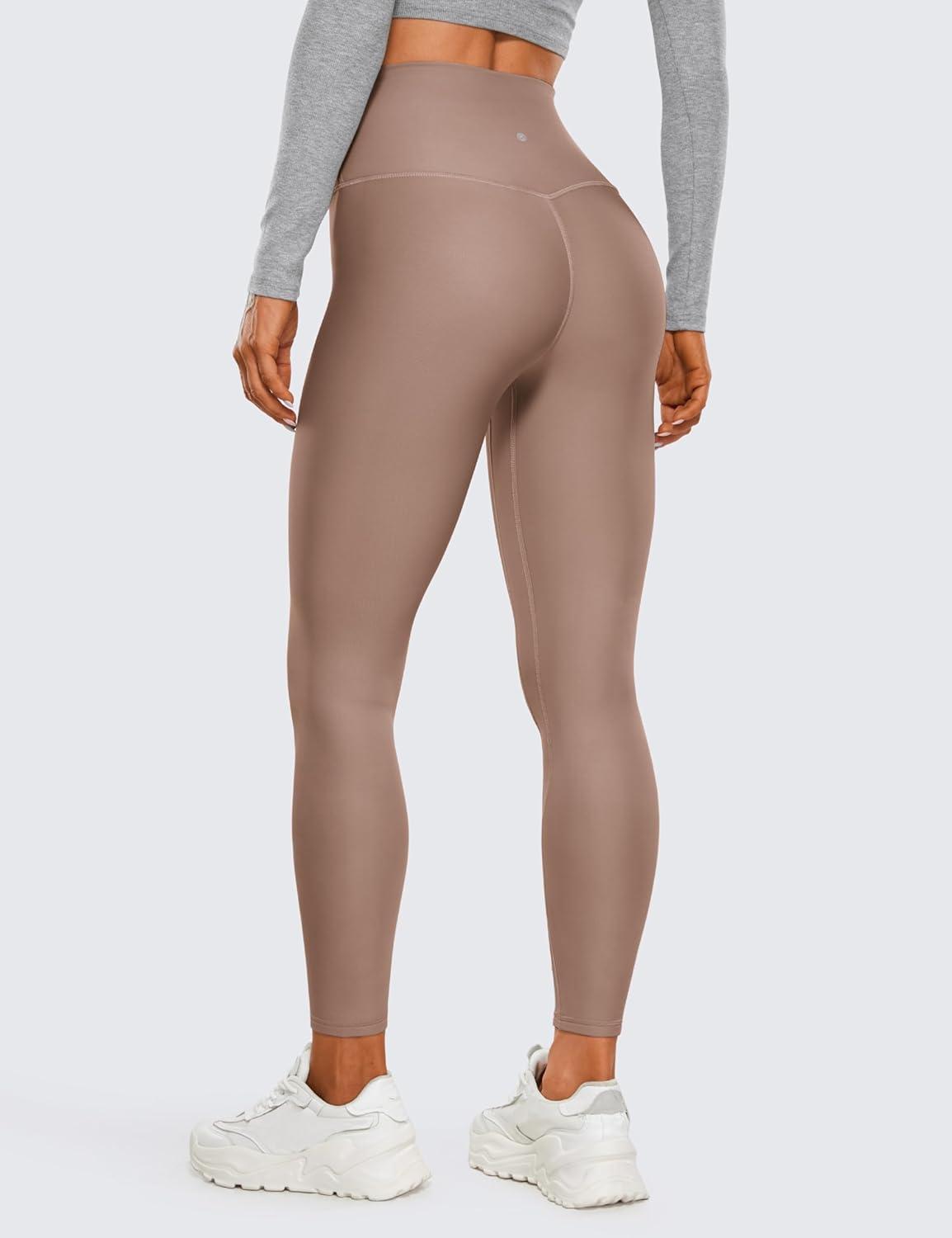 CRZ YOGA Fleece Lined Leggings 25” – Thermal Casual Lounge Workout Womens Yoga High Waisted Pants Winter Warm(Brown Purple)