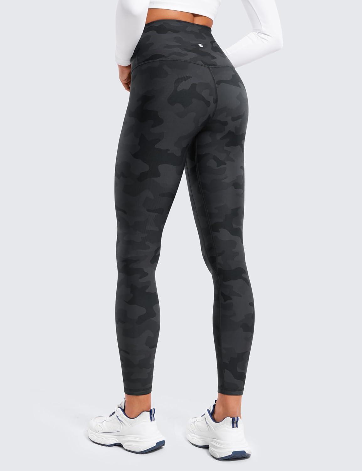 CRZ YOGA Fleece Lined Leggings 25'' - Thermal Casual Lounge Workout Womens Yoga High Waisted Pants Winter Warm(Dark Grey Camouflage)