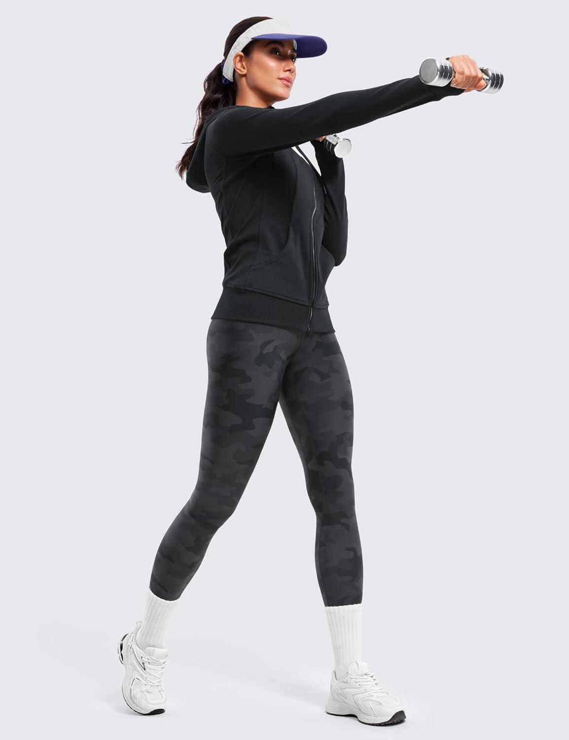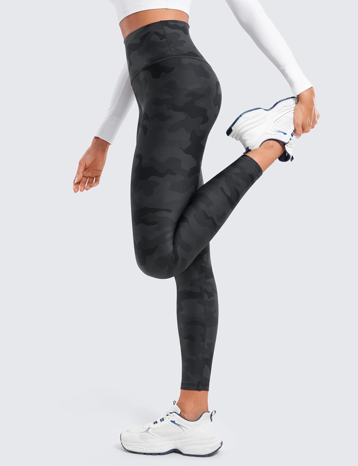 CRZ YOGA Fleece Lined Leggings 25” – Thermal Casual Lounge Workout Womens Yoga High Waisted Pants Winter Warm(Dark Grey Camouflage)
