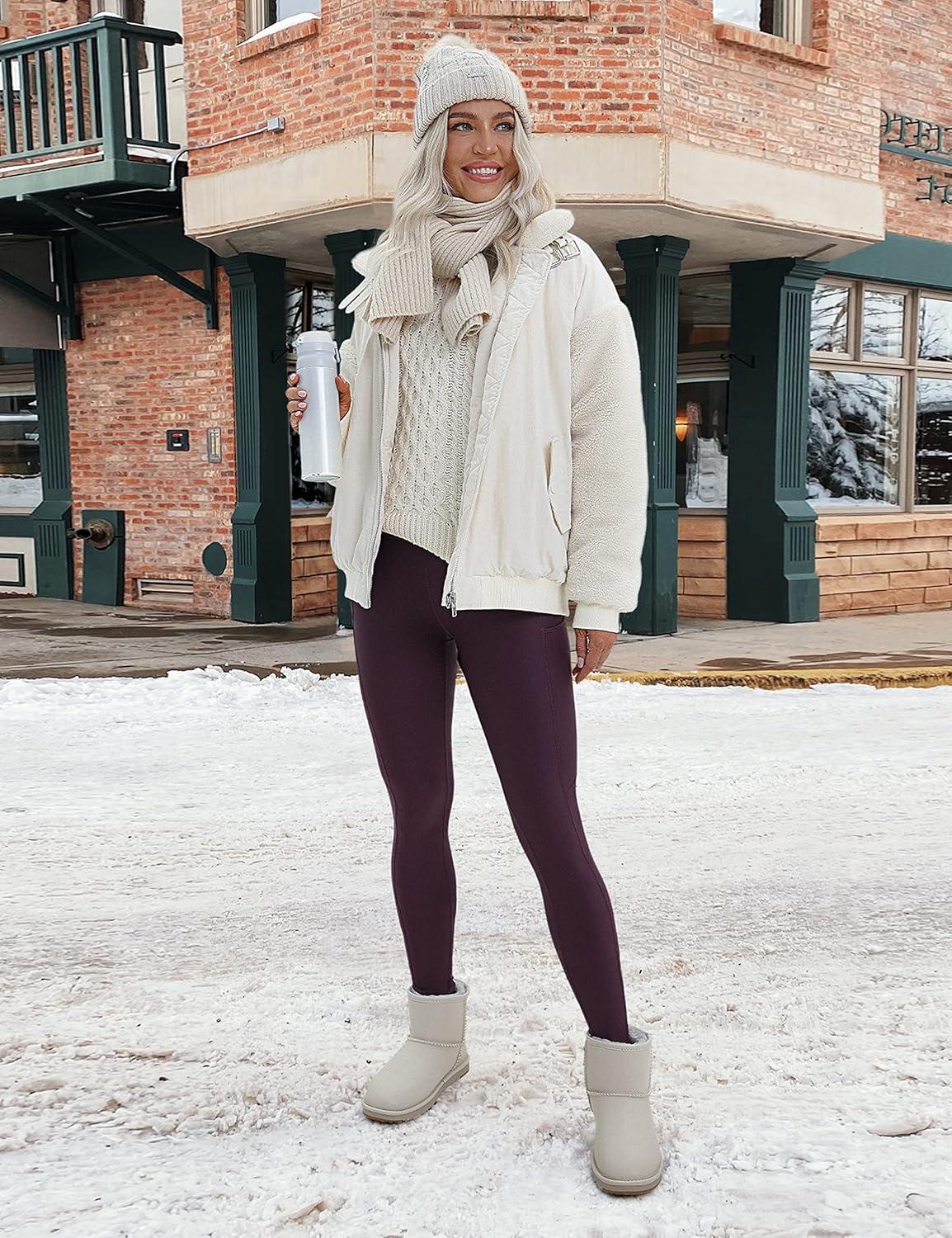 imageCRZ YOGA Fleece Lined Leggings 28  Thermal Casual Lounge Workout Yoga Womens Full Length Pants Winter WarmArctic Plum