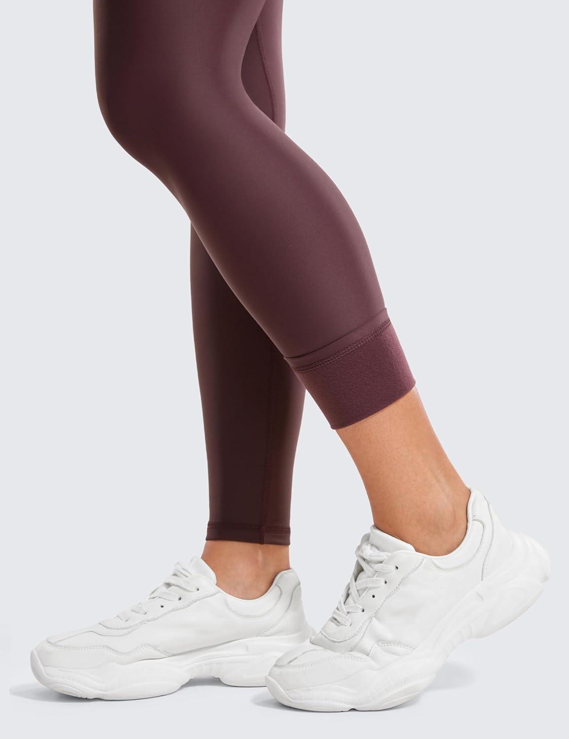 CRZ YOGA Fleece Lined Leggings 28” – Thermal Casual Lounge Workout Yoga Womens Full Length Pants Winter Warm(Arctic Plum)