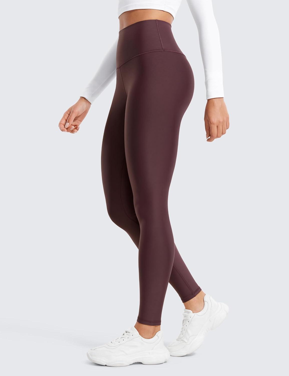 CRZ YOGA Fleece Lined Leggings 28” – Thermal Casual Lounge Workout Yoga Womens Full Length Pants Winter Warm(Dark Red)