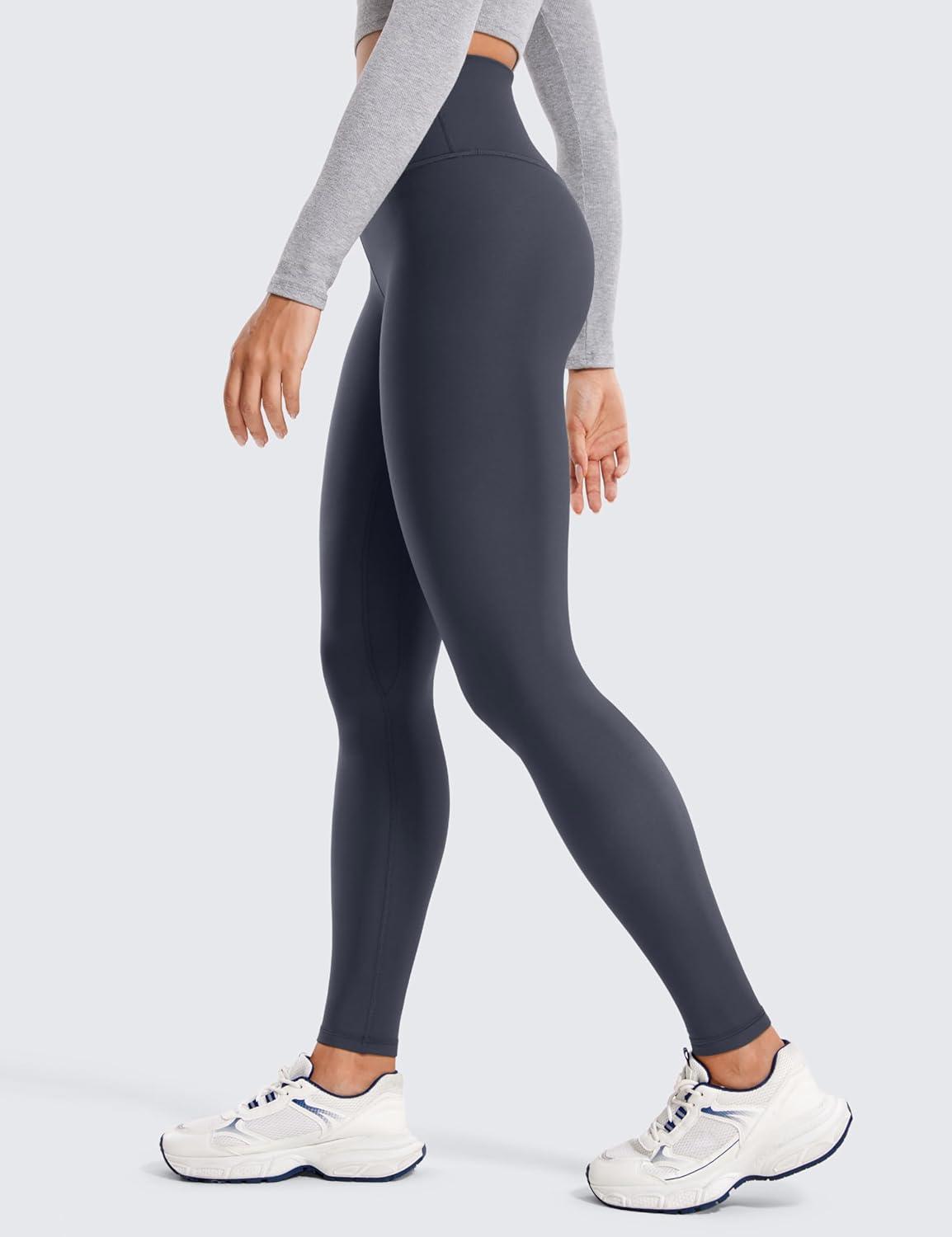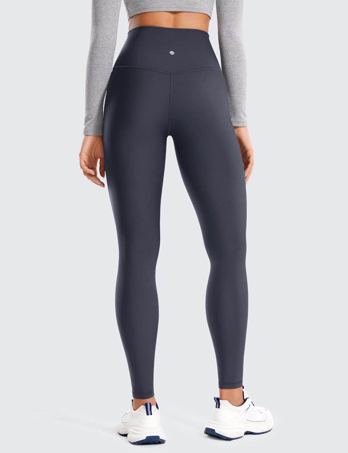 CRZ YOGA Fleece Lined Leggings 28” – Thermal Casual Lounge Workout Yoga Womens Full Length Pants Winter Warm(Universe Blue)