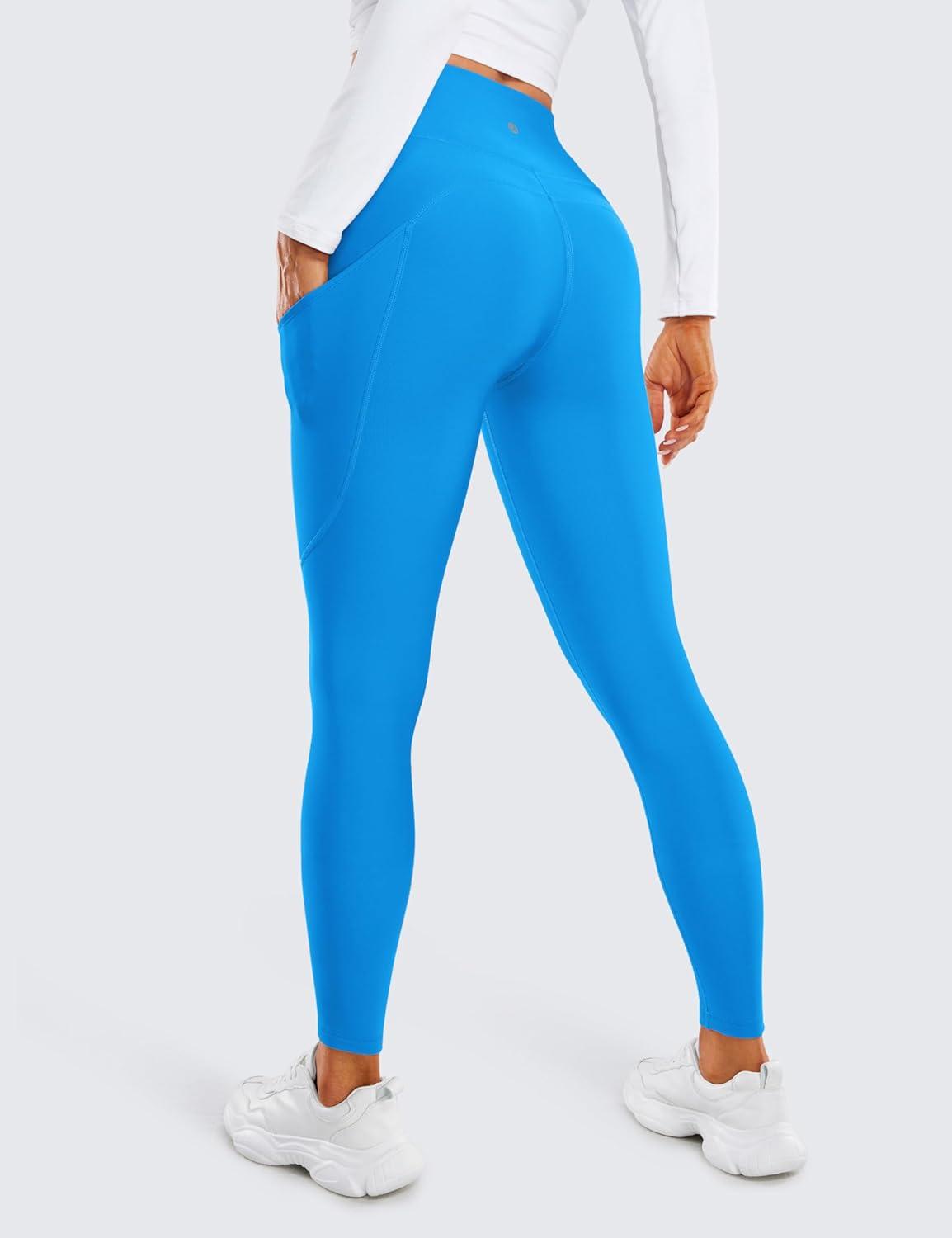 CRZ YOGA Fleece Lined Leggings Pockets 28'' - Thermal Casual Lounge Workout Womens Yoga Full Length Pants Winter Warm(Madagascar Blue)