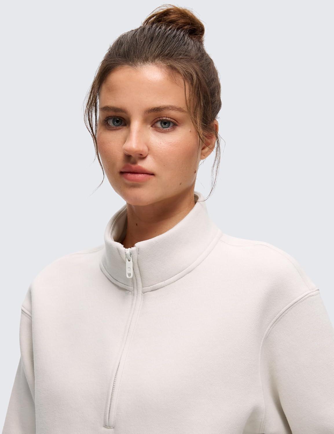 CRZ YOGA women's sweatshirts are refined with high-quality cotton blended fabrics and fleece lining, keeping you warm and comfortable in cold winter. With a cozy funnel neck design, this half zip sweatshirts provide enough warmth and a stylish look. Designed for daily outfit or lounging.