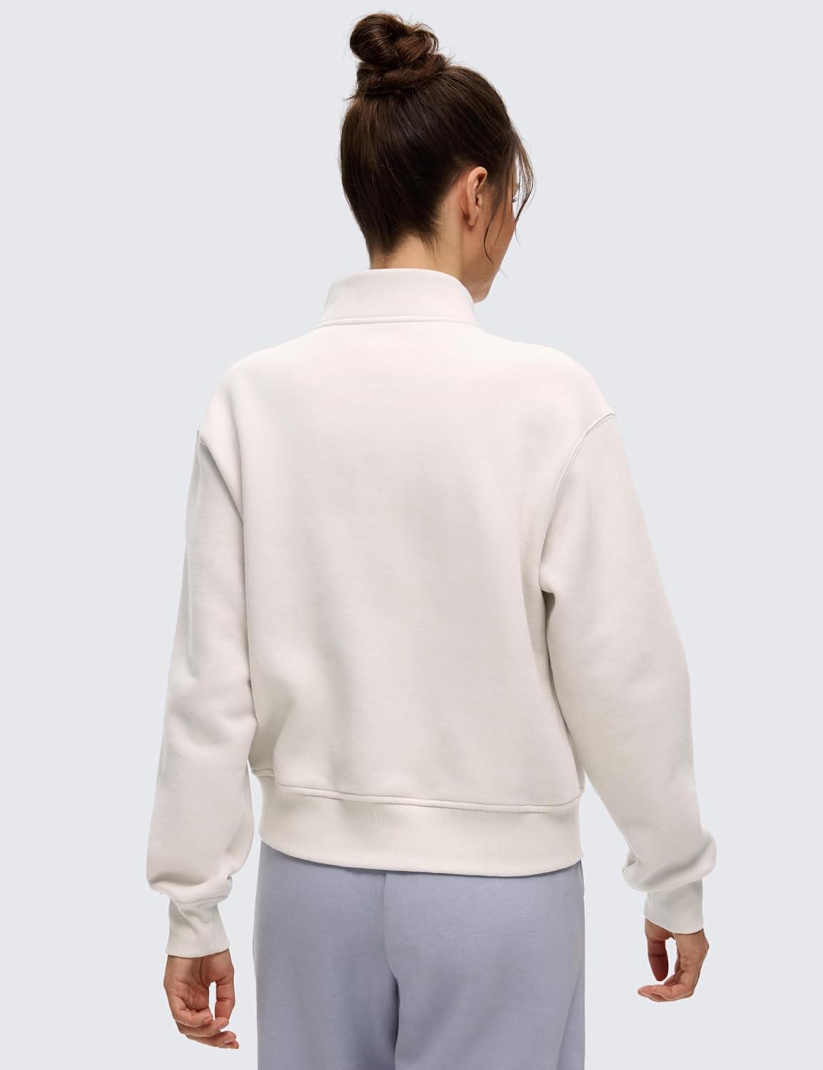 CRZ YOGA Fleece Lined Sweatshirt for Women Half Zip Funnel Neck Pullover Long Sleeve Workout Casual Sweat Shirts(Milky White)