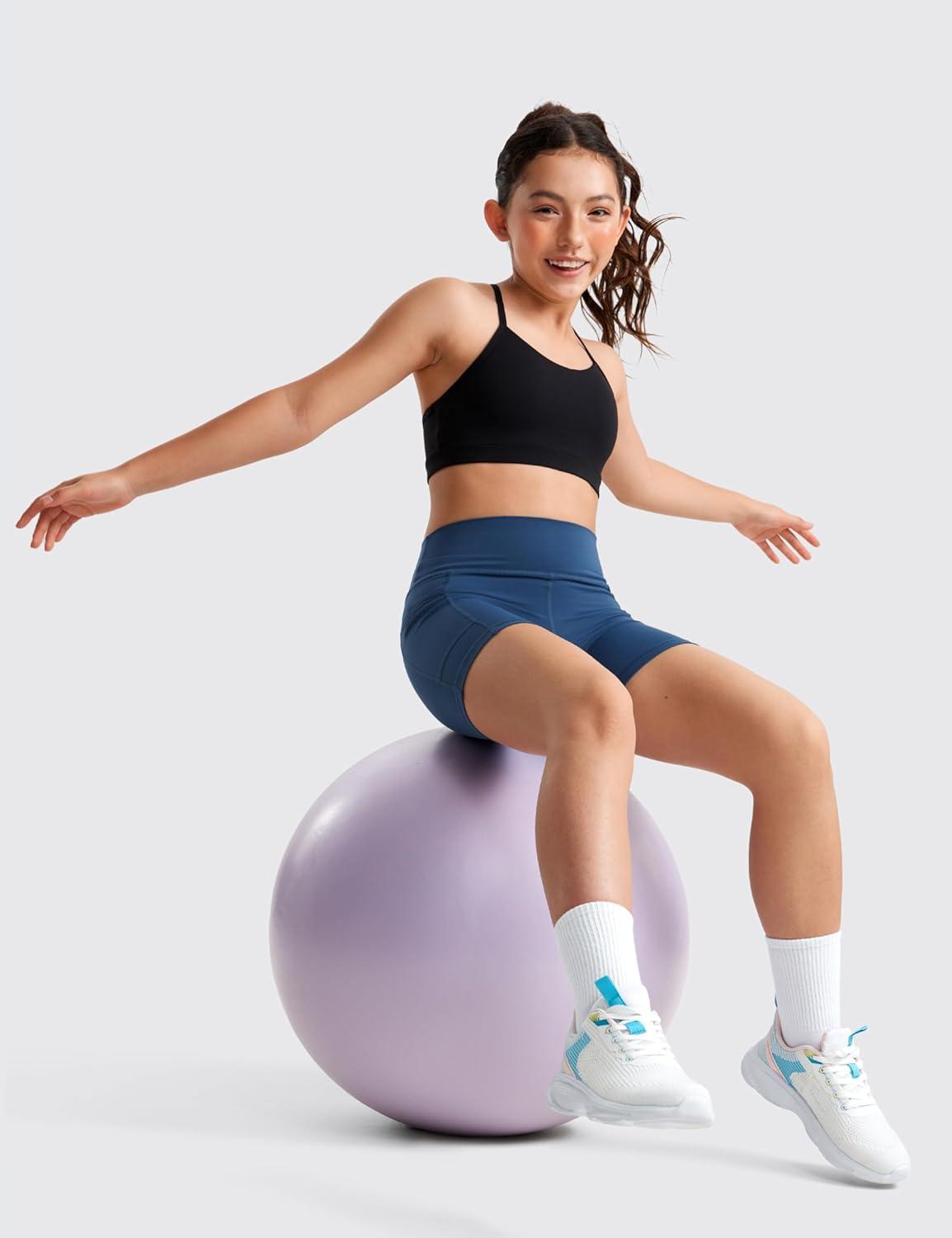 imageCRZ YOGA Girls Butterluxe Athletic Biker Shorts with Pockets  Dance Yoga Casual High Waist Kids Teen SummerFrench Navy