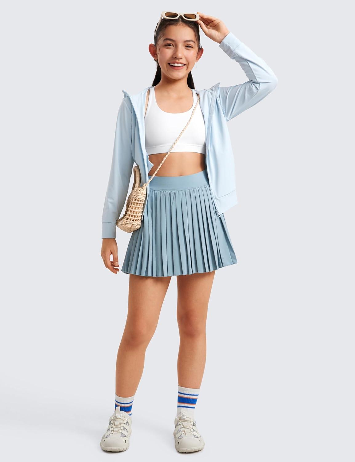 CRZ YOGA Girls Butterluxe Cross Back Sports Bra – Yoga Athletic Casual Tops Scoop Neck Padded Crop Kids Teen(Cambric Blue)