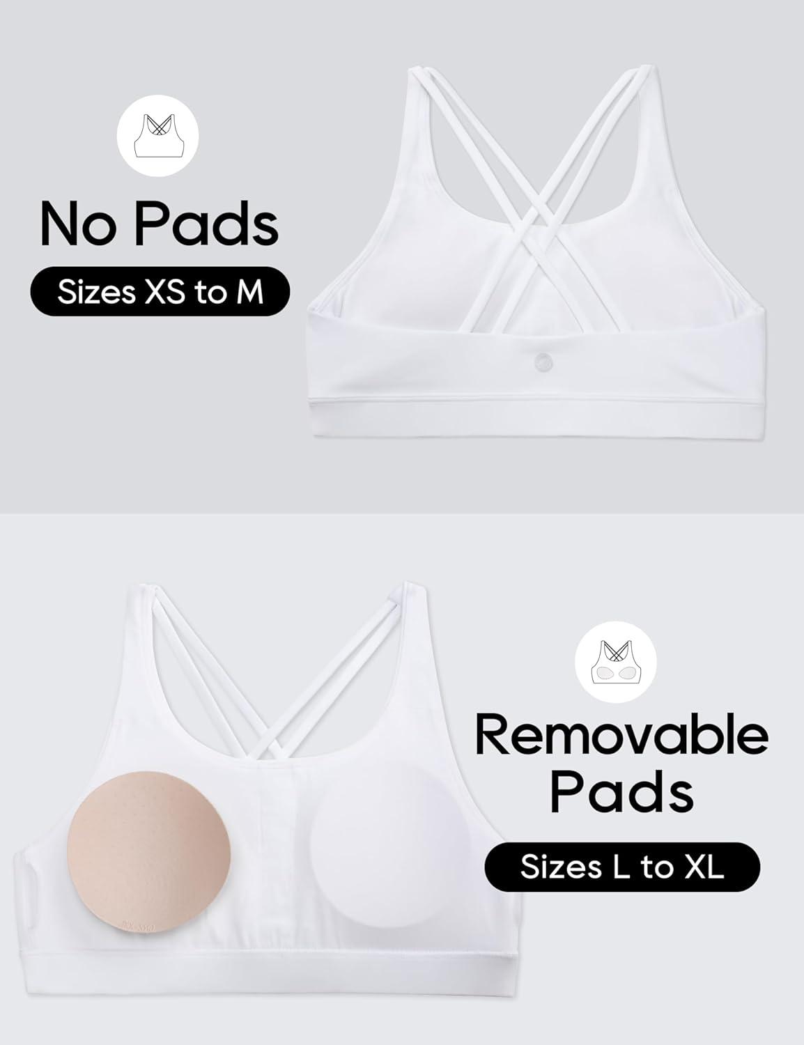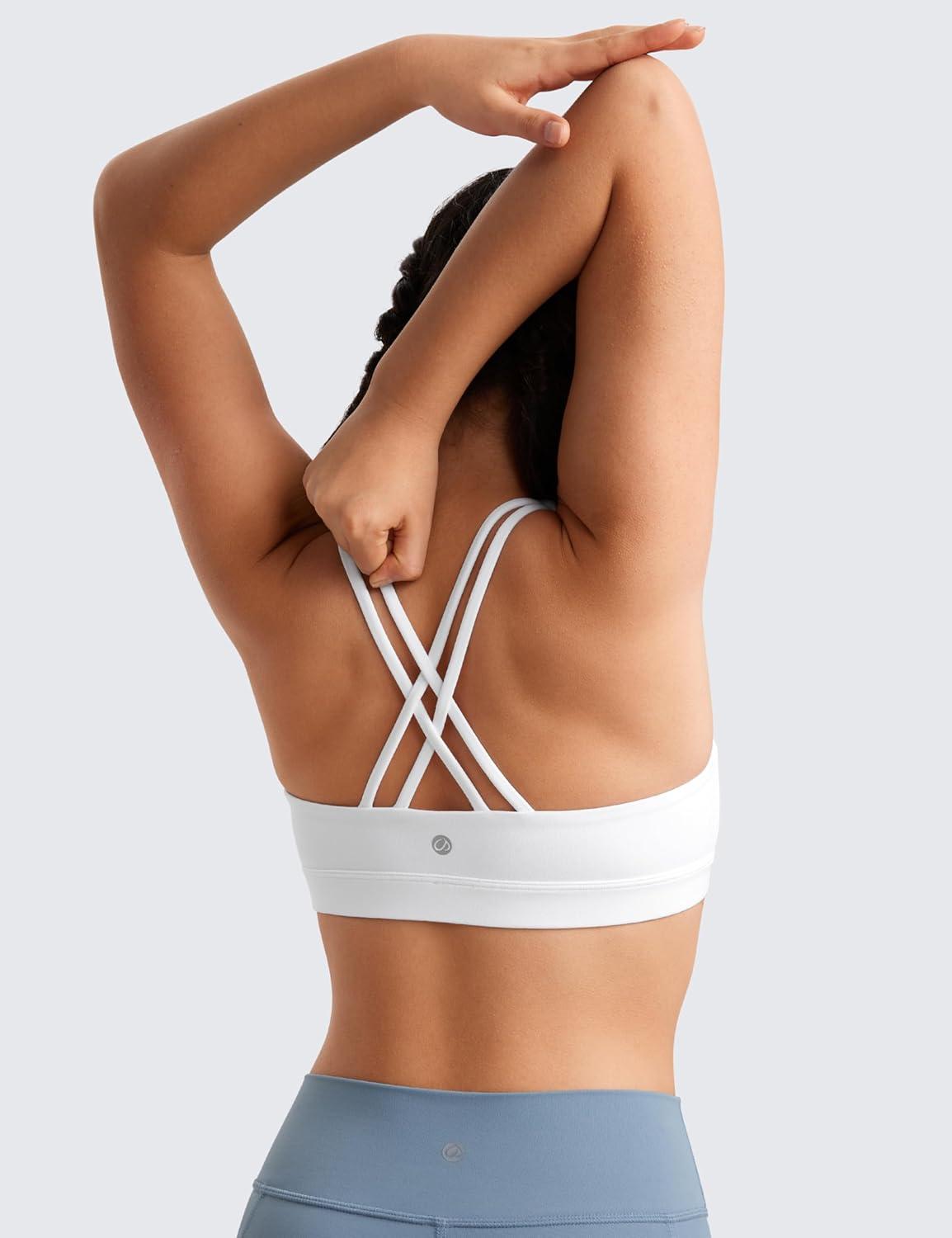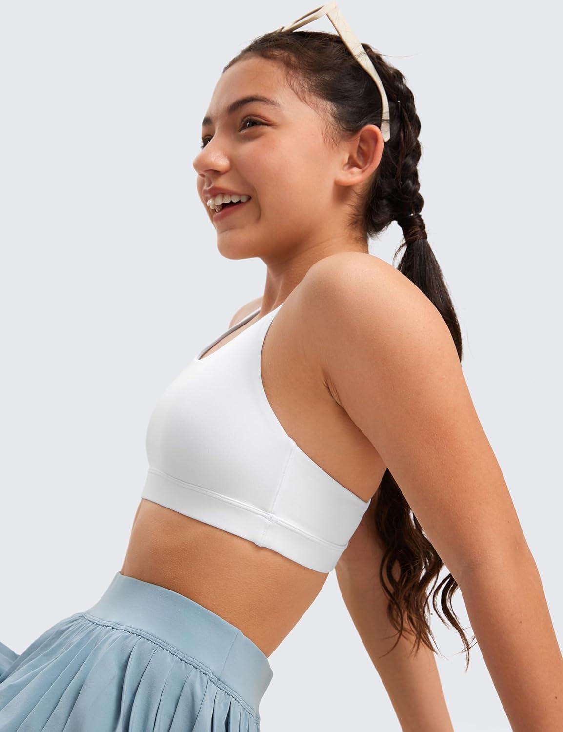 CRZ YOGA Girls Butterluxe Cross Back Sports Bra – Yoga Athletic Casual Tops Scoop Neck Padded Crop Kids Teen(White)