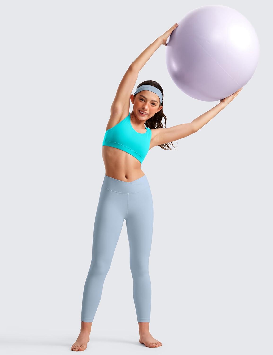 CRZ YOGA Girls Butterluxe Crossover Athletic Leggings – High Waist V Cross Kids Lounge Pants Yoga Active Dance Running Tights(Cambric Blue)