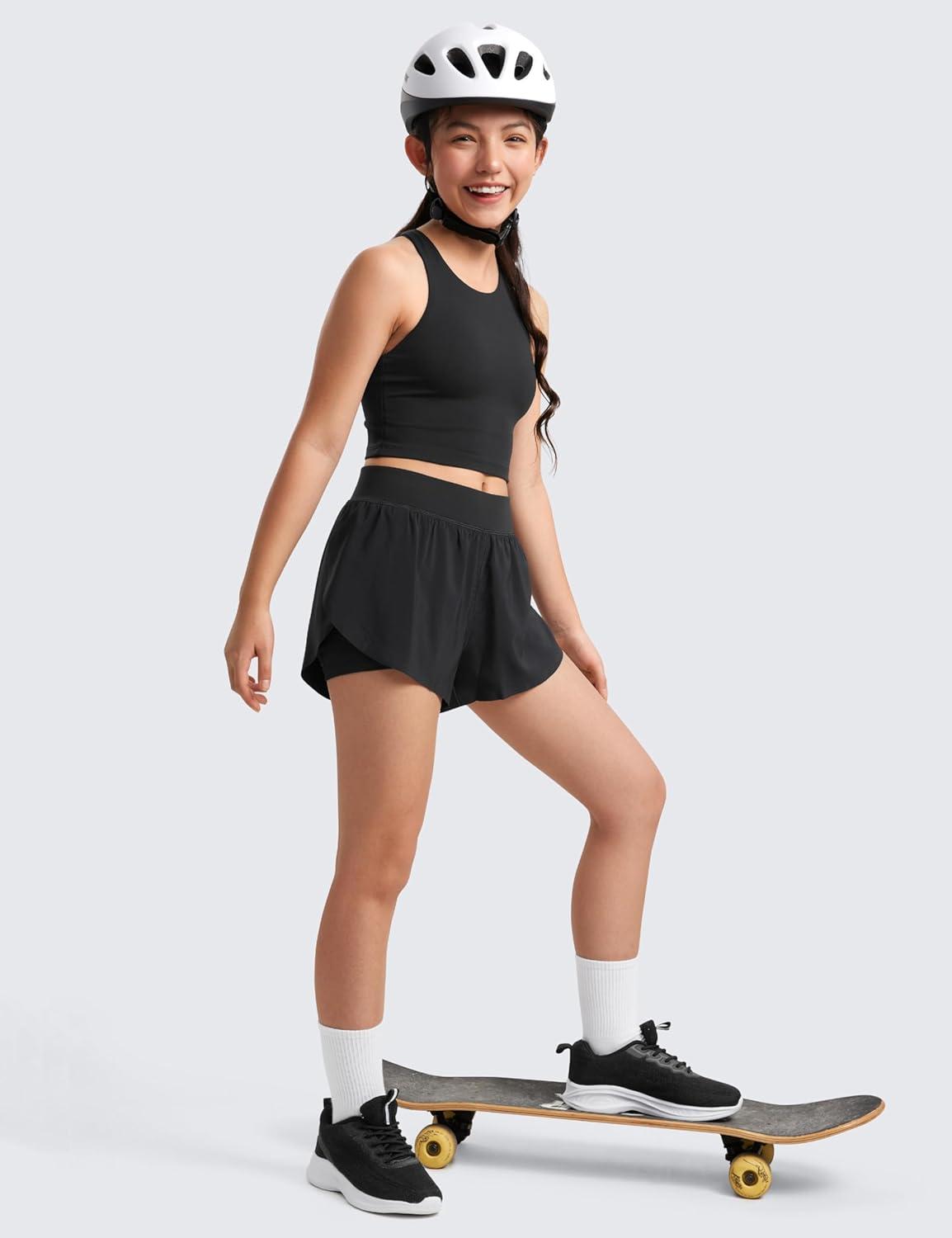 imageCRZ YOGA Girls Butterluxe Double Lined Crop High Neck Tank Tops  Dance Yoga Athletic Casual Racerback Tight Kids TeenBlack
