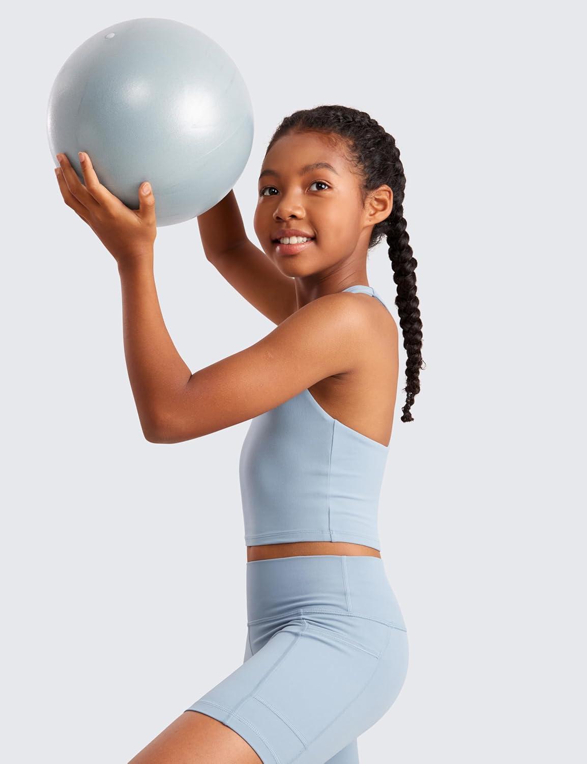 CRZ YOGA Girls Butterluxe Double Lined Crop High Neck Tank Tops – Dance Yoga Athletic Casual Racerback Tight Kids Teen(Cambric Blue)