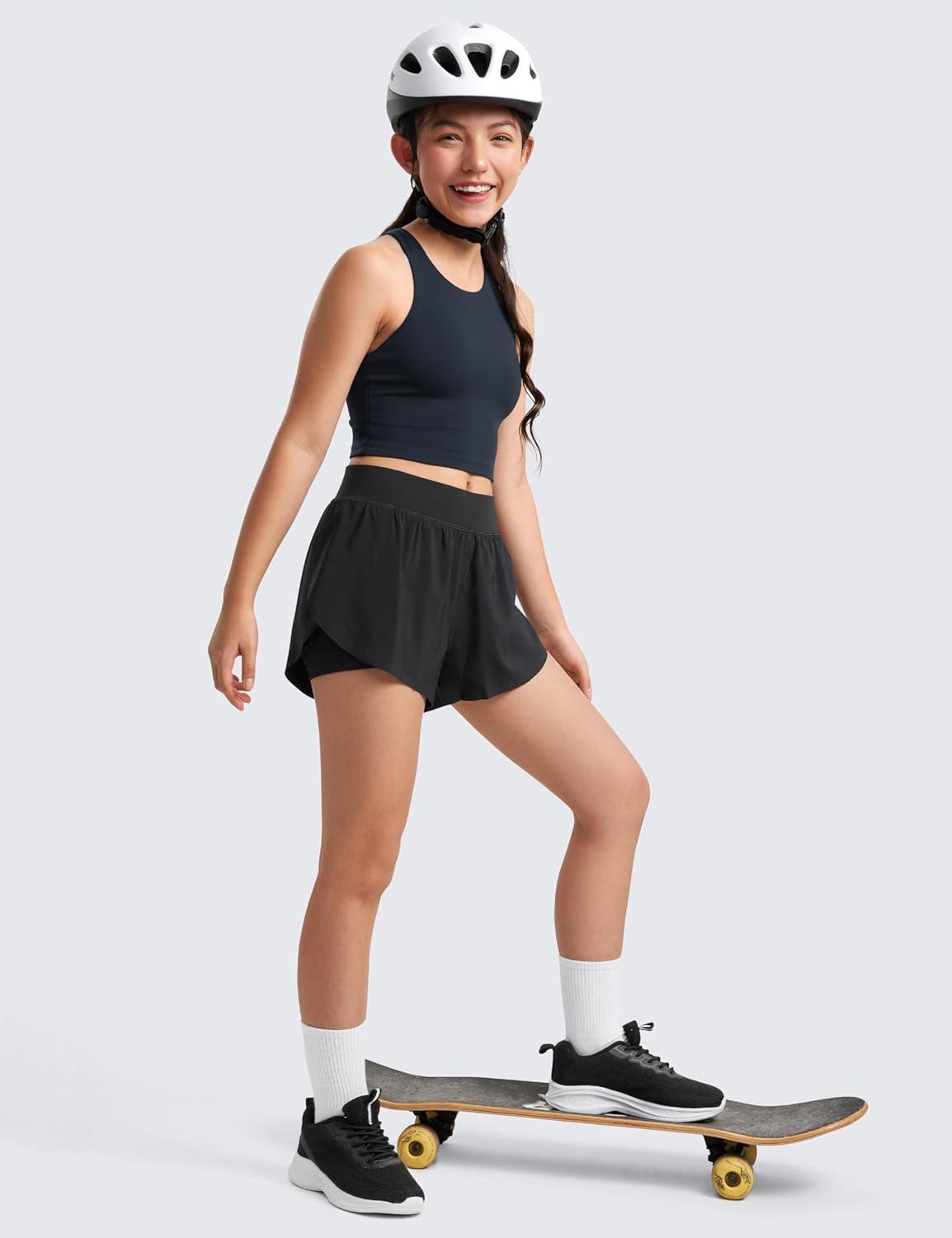 CRZ YOGA Girls Butterluxe Double Lined Crop High Neck Tank Tops – Dance Yoga Athletic Casual Racerback Tight Kids Teen(Cascadia Green)