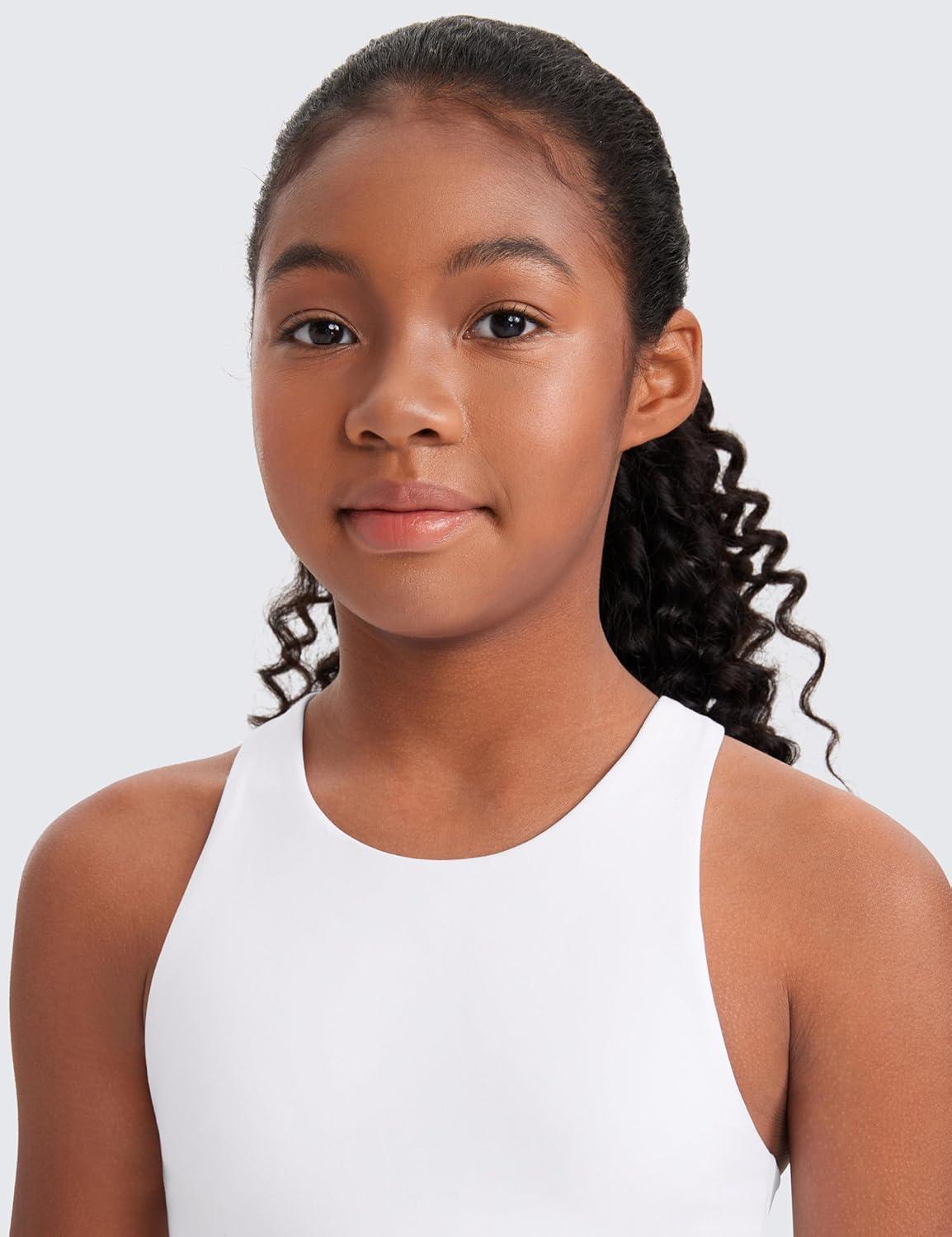 CRZ YOGA Girls Butterluxe Double Lined High Neck Tank Tops Waist Length – Dance Yoga Athletic Casual Racerback Kids Teen(White)
