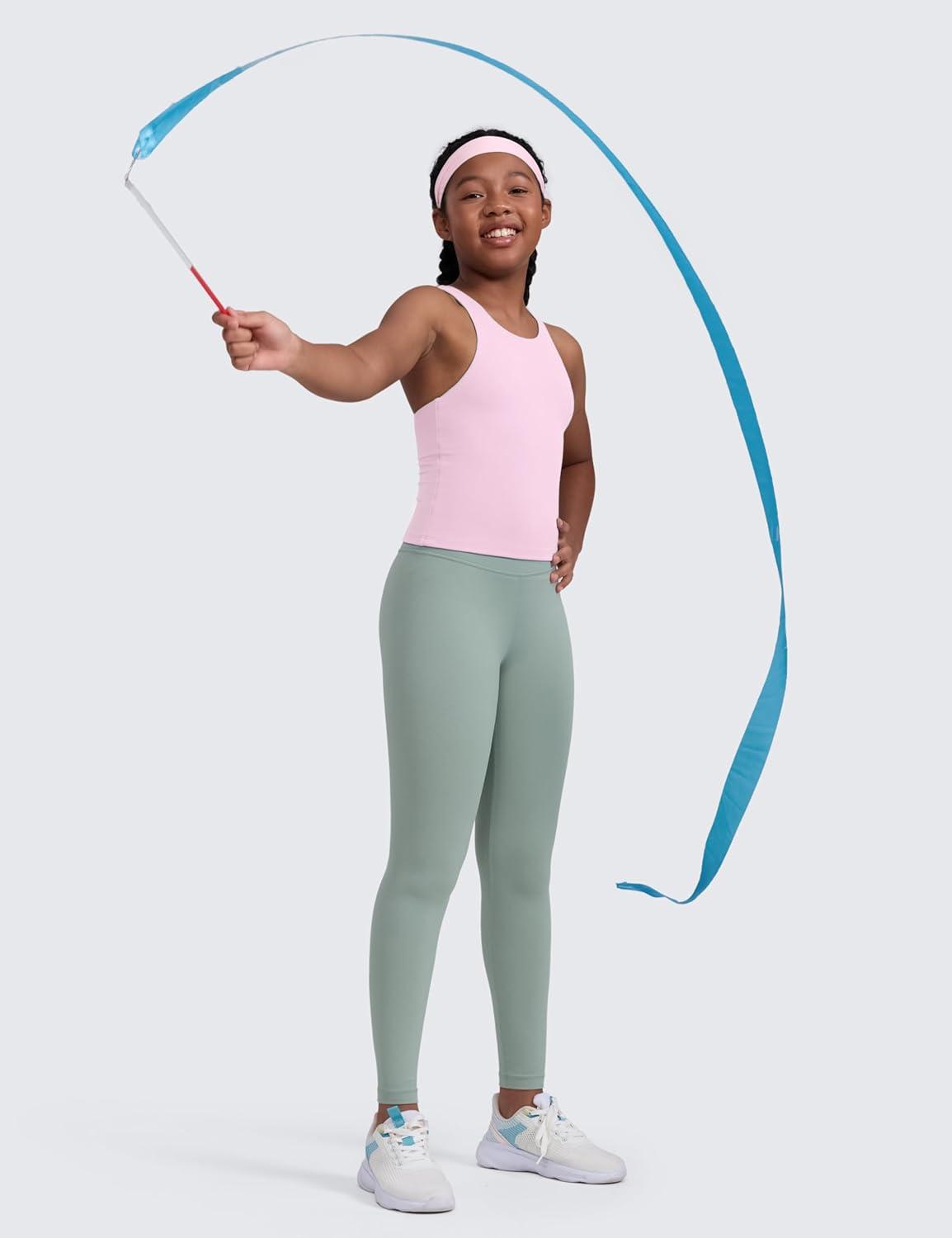 CRZ YOGA Girls Butterluxe Double Lined Racerback Tank Tops Waist Length – High Neck Dance Yoga Athletic Casual Kids Teen(Pink Peony)