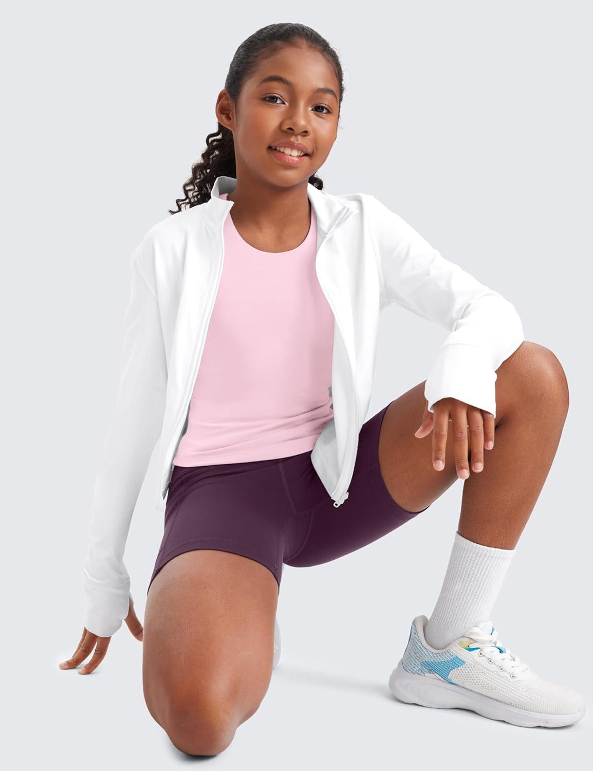 CRZ YOGA Girls Butterluxe Double Lined Racerback Tank Tops Waist Length – High Neck Dance Yoga Athletic Casual Kids Teen(Hibiscus Purple)
