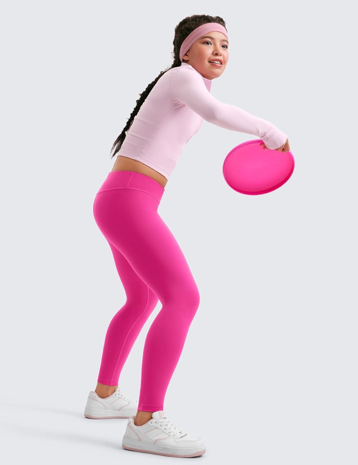 CRZ YOGA Girls Butterluxe Full Length Athletic Leggings – Kids High Waist Lounge Pants Active Dance Running Yoga Tights(Hibiscus Purple)