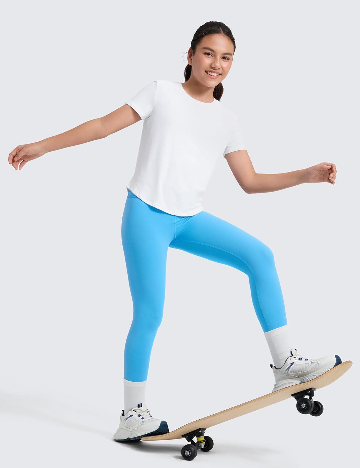 CRZ YOGA Girls Butterluxe Full Length Yoga Leggings – Athletic Sports Casual Pants High Waist Tights Kids Teen(Kayak Blue)