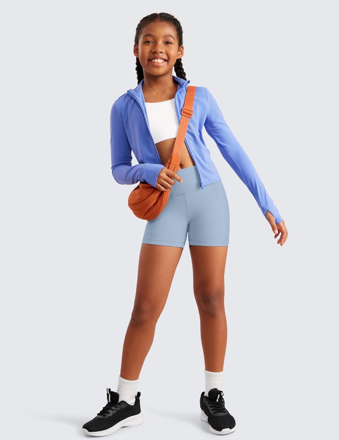 CRZ YOGA Girls Butterluxe High Waist Athletic Biker Shorts – Dance Yoga Casual Kids Teen Summer(Cambric Blue)