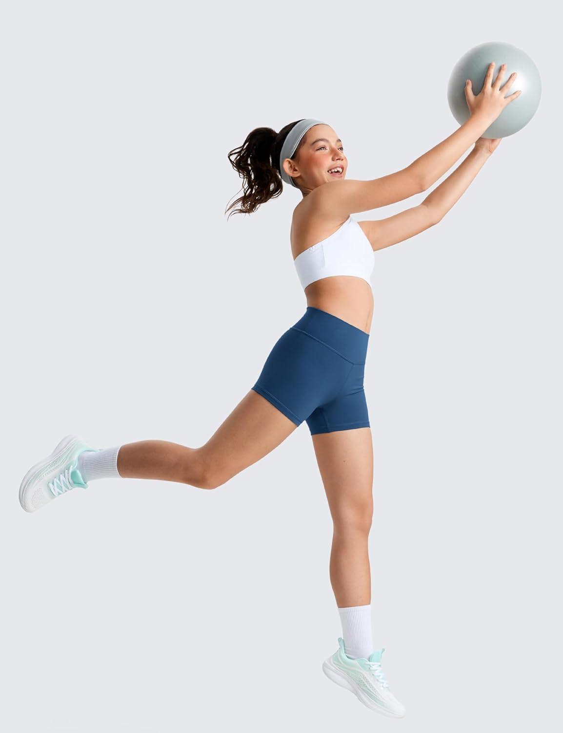 CRZ YOGA Girls Butterluxe High Waist Athletic Biker Shorts – Dance Yoga Casual Kids Teen Summer(Twilight Blue)