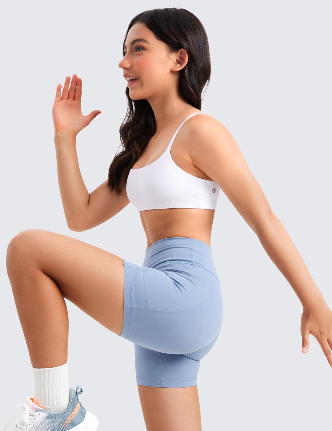 imageCRZ YOGA Girls Butterluxe Sports Bras  Adjustable Spaghetti Strap Scoop Neck for Teens Kids Yoga Workout DanceWhite