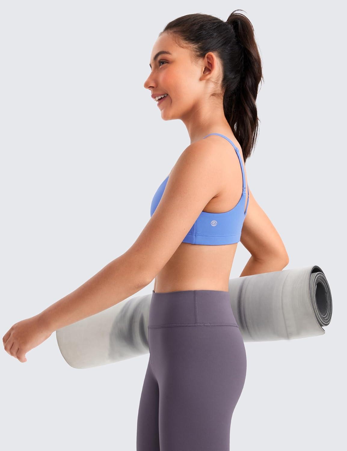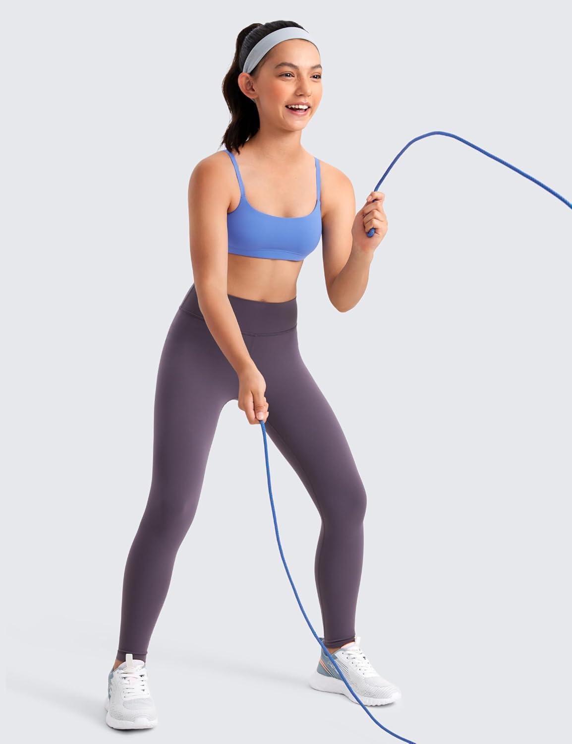 CRZ YOGA Girls Butterluxe Sports Bras – Adjustable Spaghetti Strap Scoop Neck for Teens Kids Yoga Workout Dance(Wild Indigo)