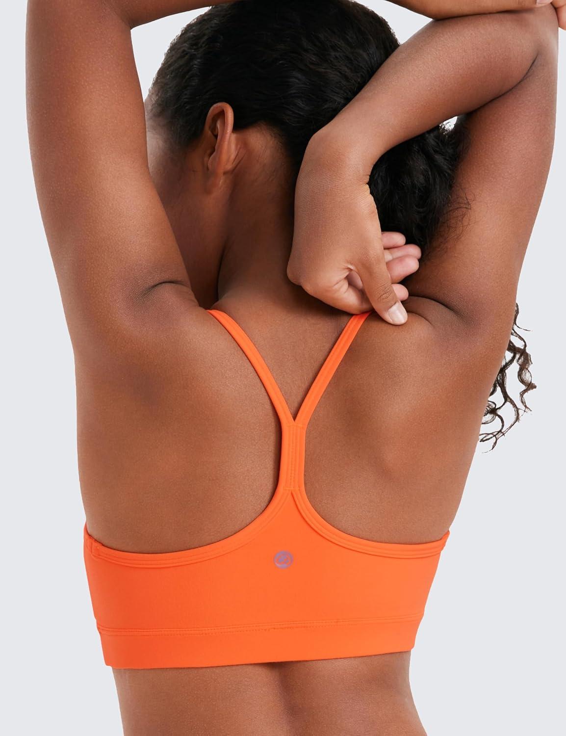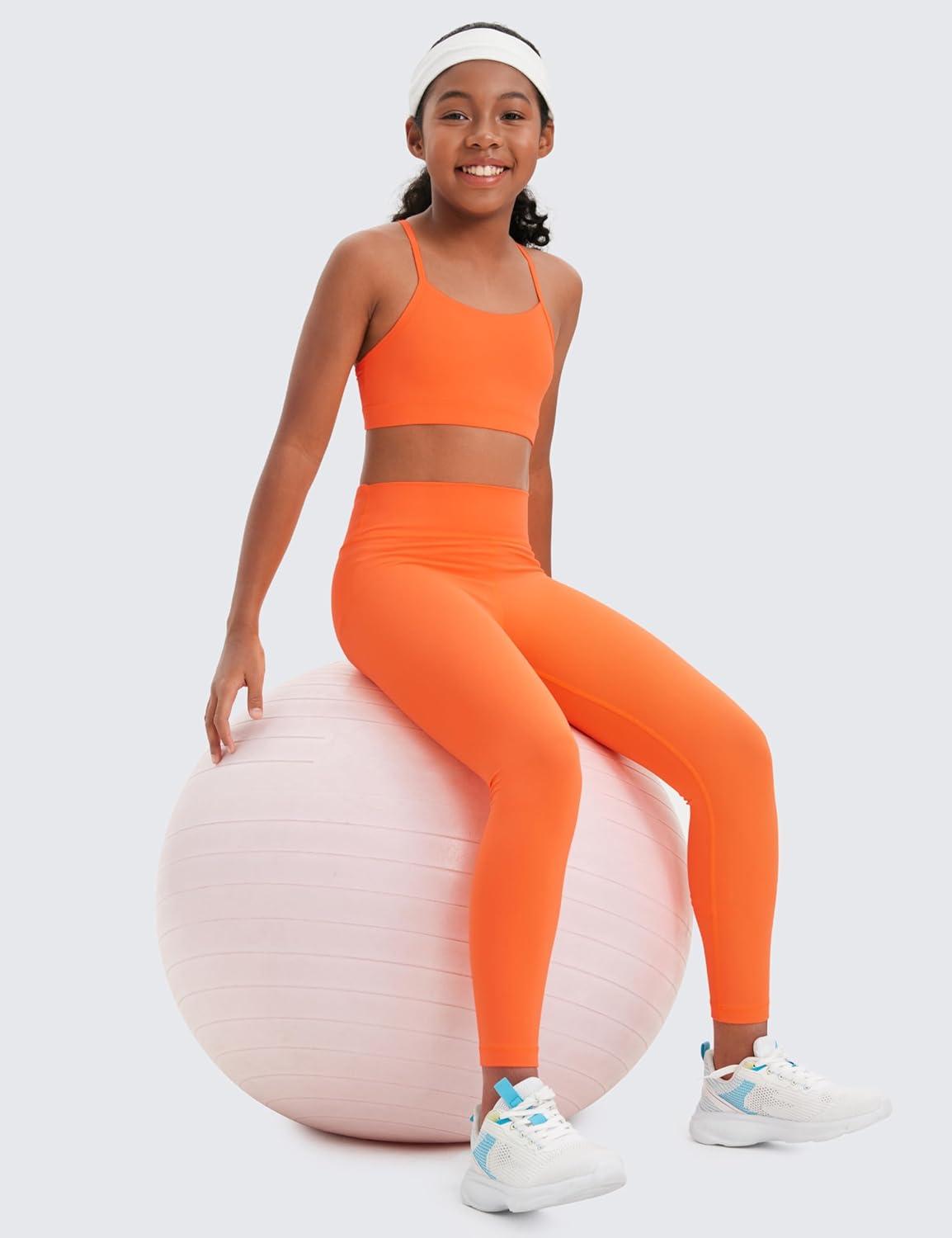 CRZ YOGA Girls Butterluxe Y Back Sports Bra – Yoga Athletic Casual Tops Scoop Neck Spaghetti Strap Padded Crop Kids Teen(Neon Orange)