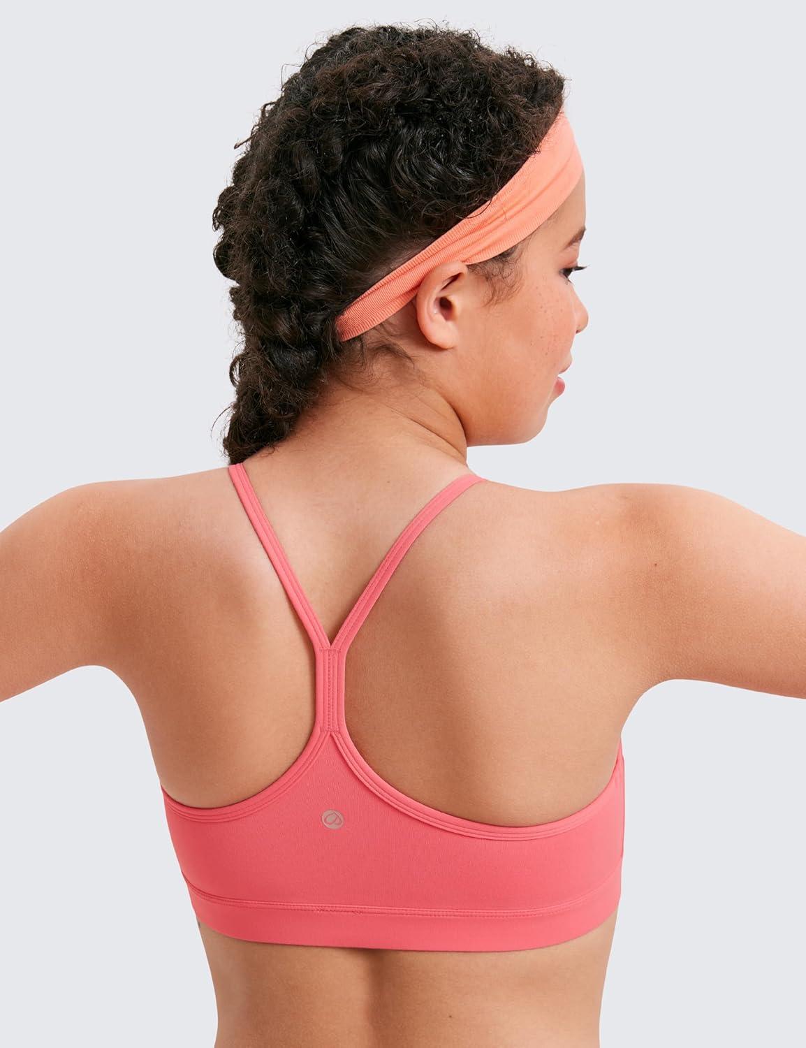 CRZ YOGA Girls Butterluxe Y Back Sports Bra - Yoga Athletic Casual Tops Scoop Neck Spaghetti Strap Padded Crop Kids Teen(Raspberry Sorbet)