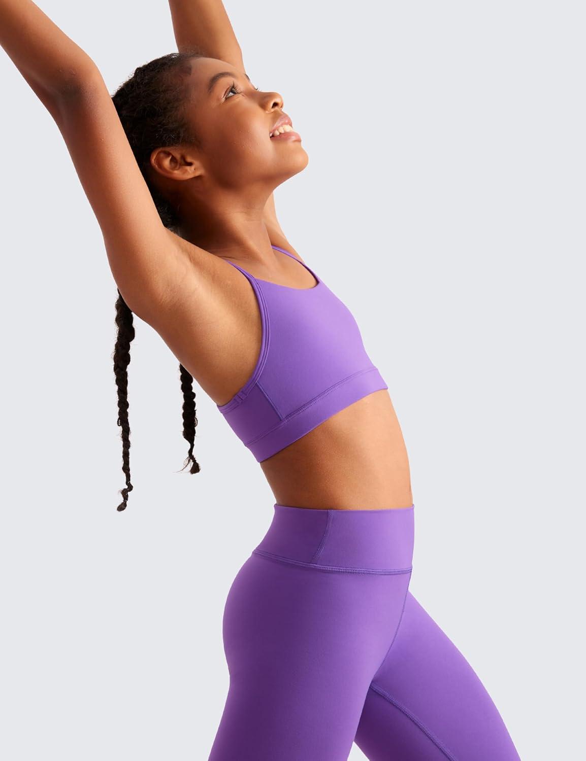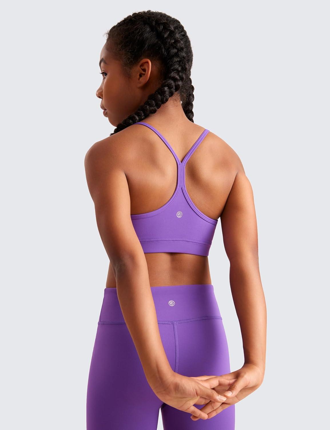 CRZ YOGA Girls Butterluxe Y Back Sports Bra - Yoga Athletic Casual Tops Scoop Neck Spaghetti Strap Padded Crop Kids Teen(Royal Lilac)
