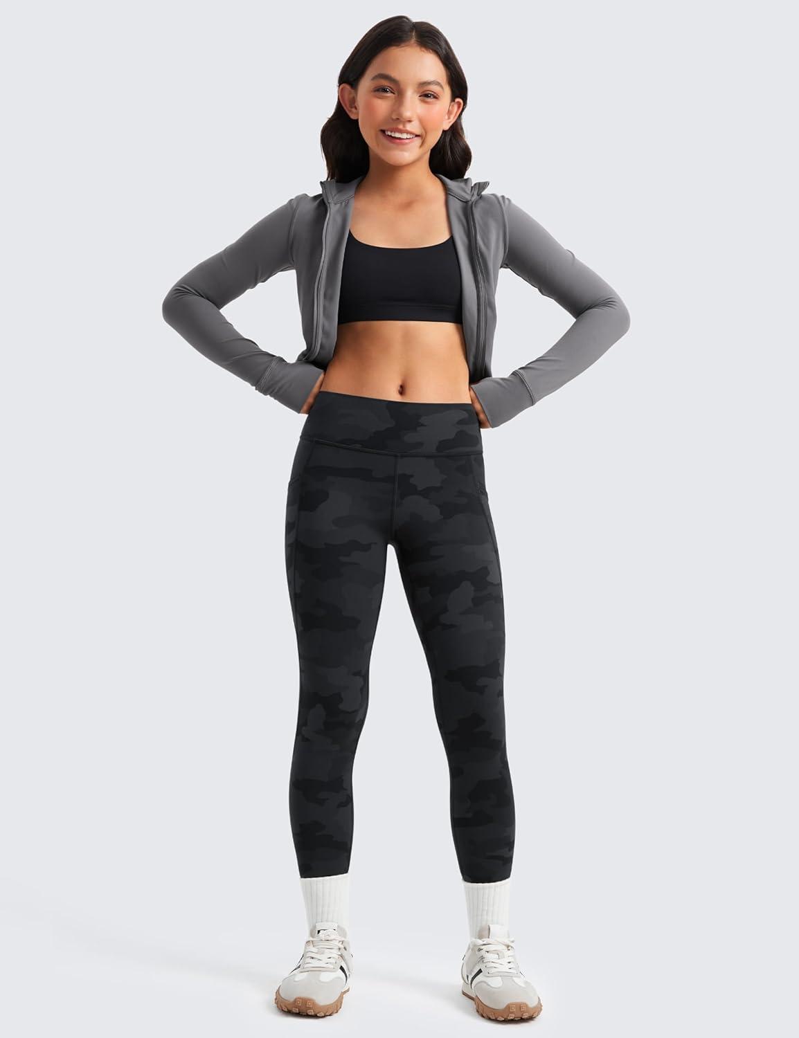 CRZ YOGA Girls Butterluxe Yoga Leggings with Pockets – Athletic Sports Casual Pants High Waist Tights Kids Teen(Dark Grey Camouflage 2)