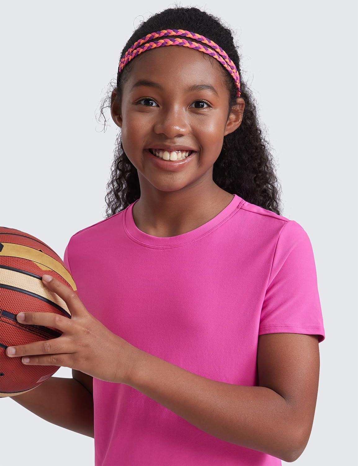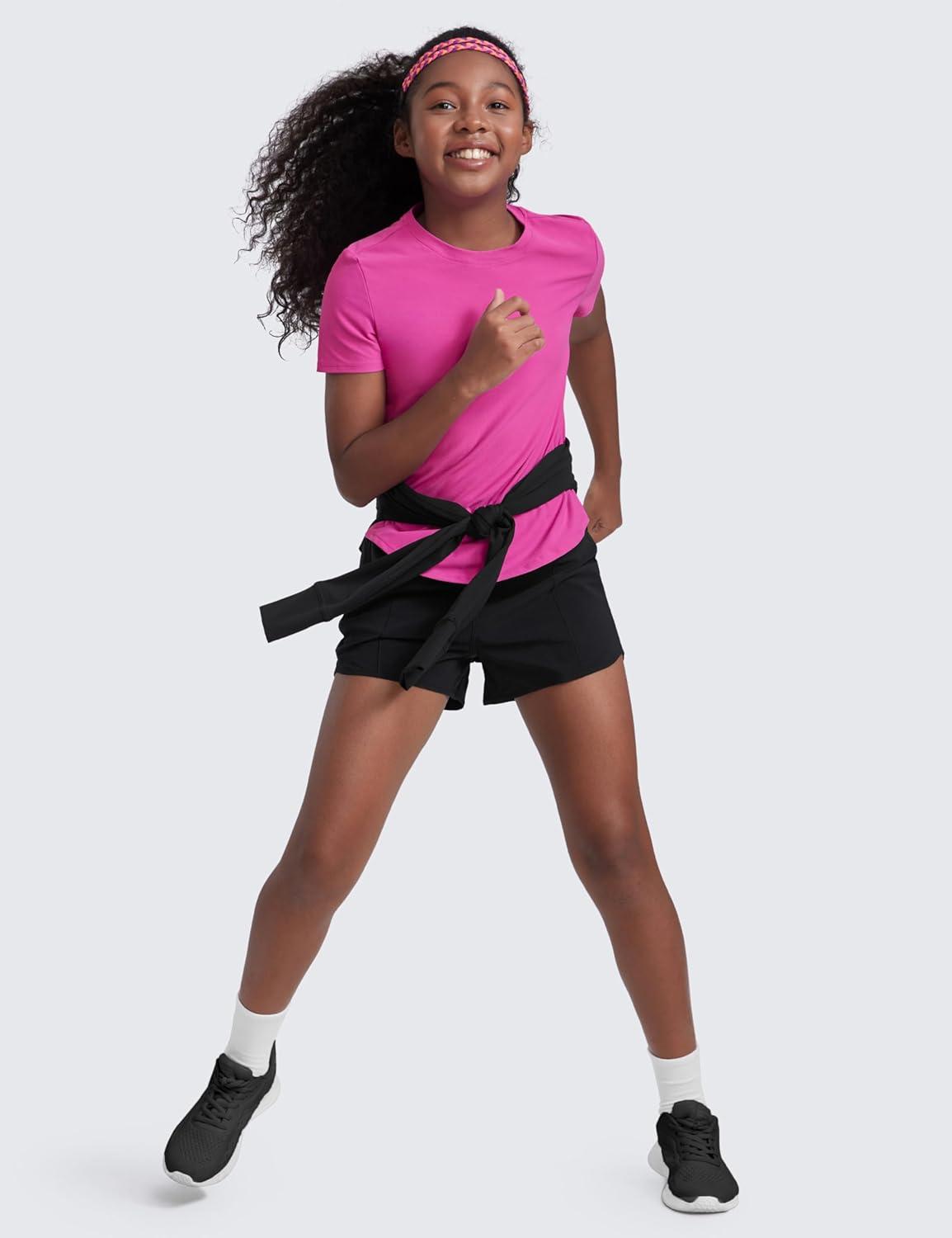CRZ YOGA Girls Cloudweight Short Sleeve Athletic T Shirts – Active Sports Casual Tees Crew Neck Side Slit Kids Teen(Lilac Air)