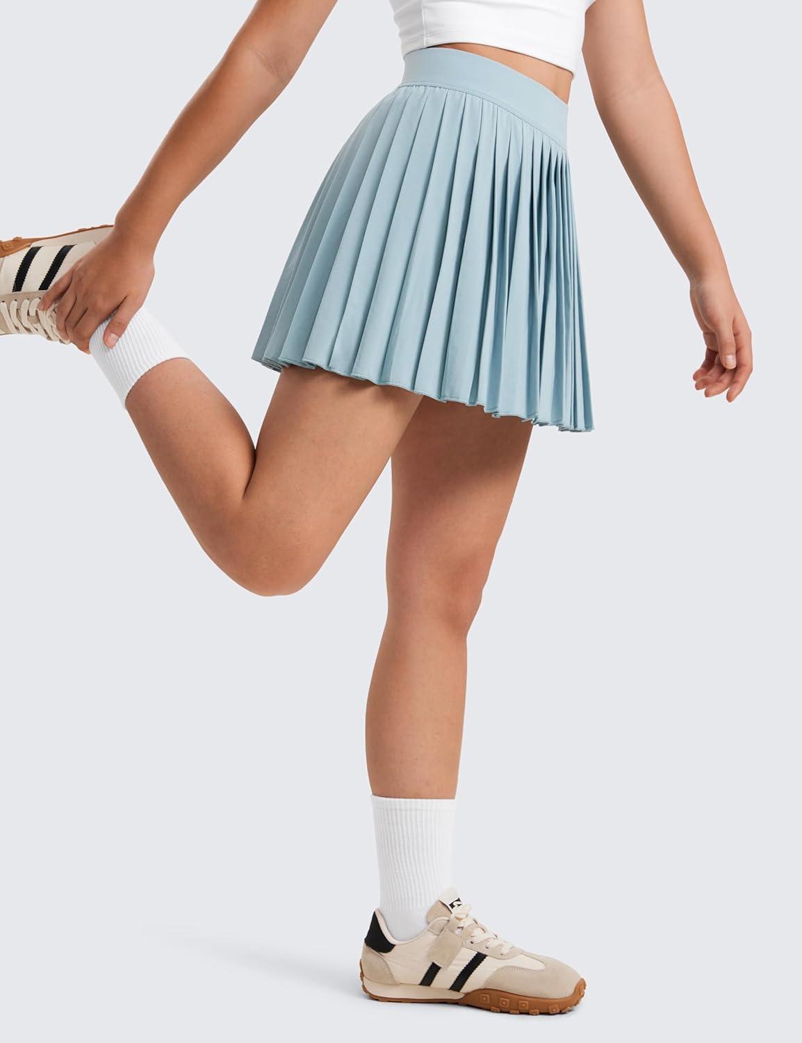 CRZ YOGA Girls Feathery-Fit Soft Athletic Pleated Skirts – Tennis School Casual Skorts with Pockets Liner Kids Teen(Light Grayish Blue)