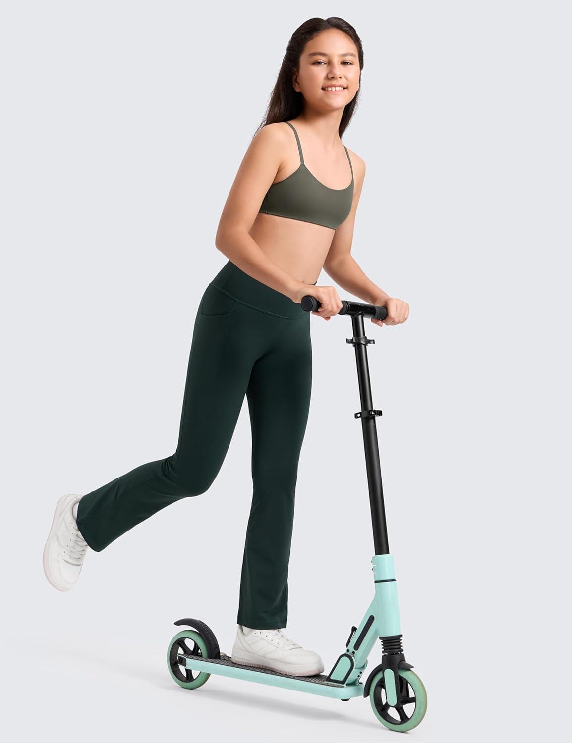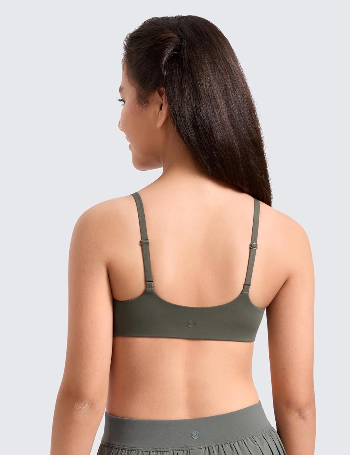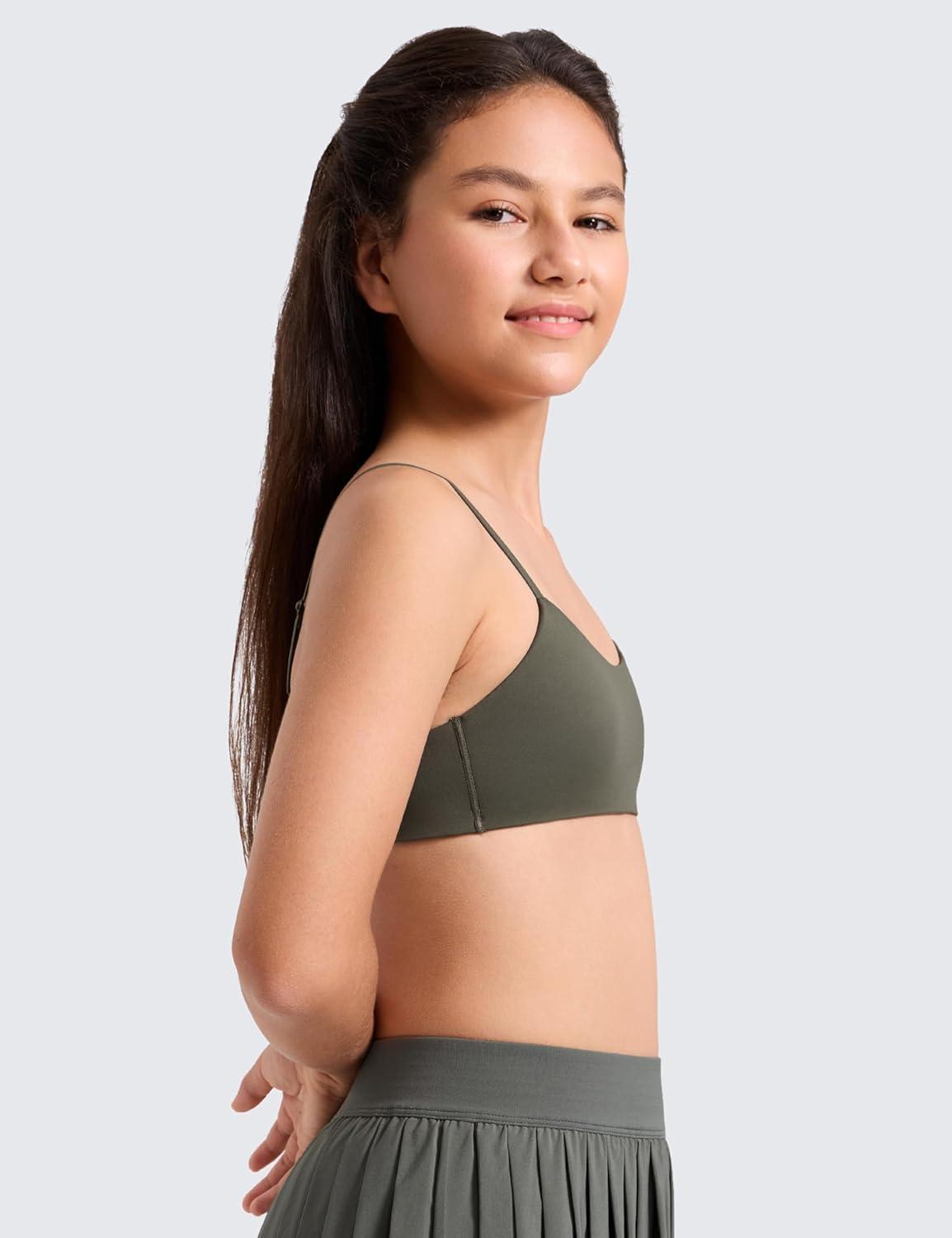 imageCRZ YOGA Girls Softness Mold Softhold Training Bra  Casual Everyday Tops V Neck Adjustable Straps Kids TeenLight Army Green