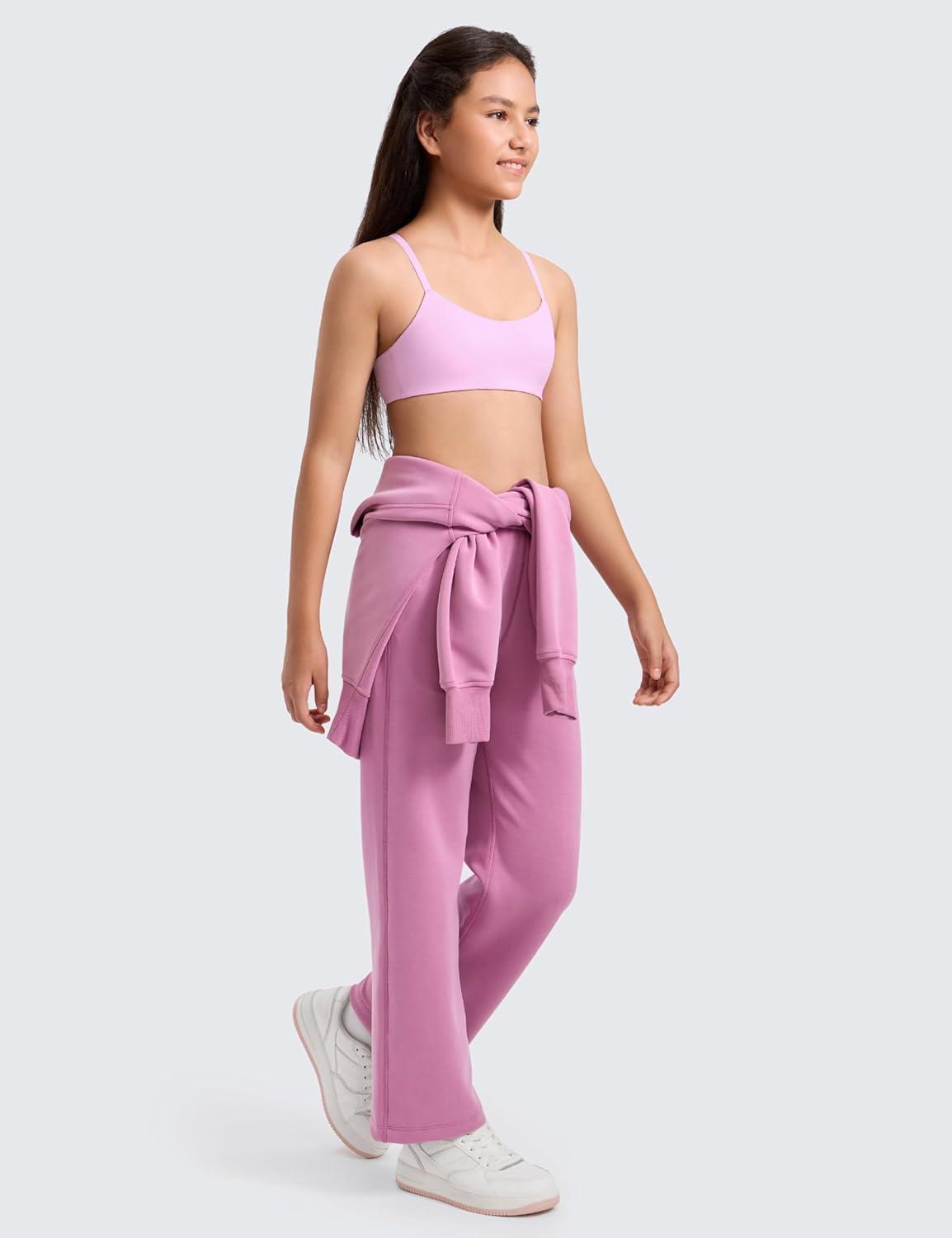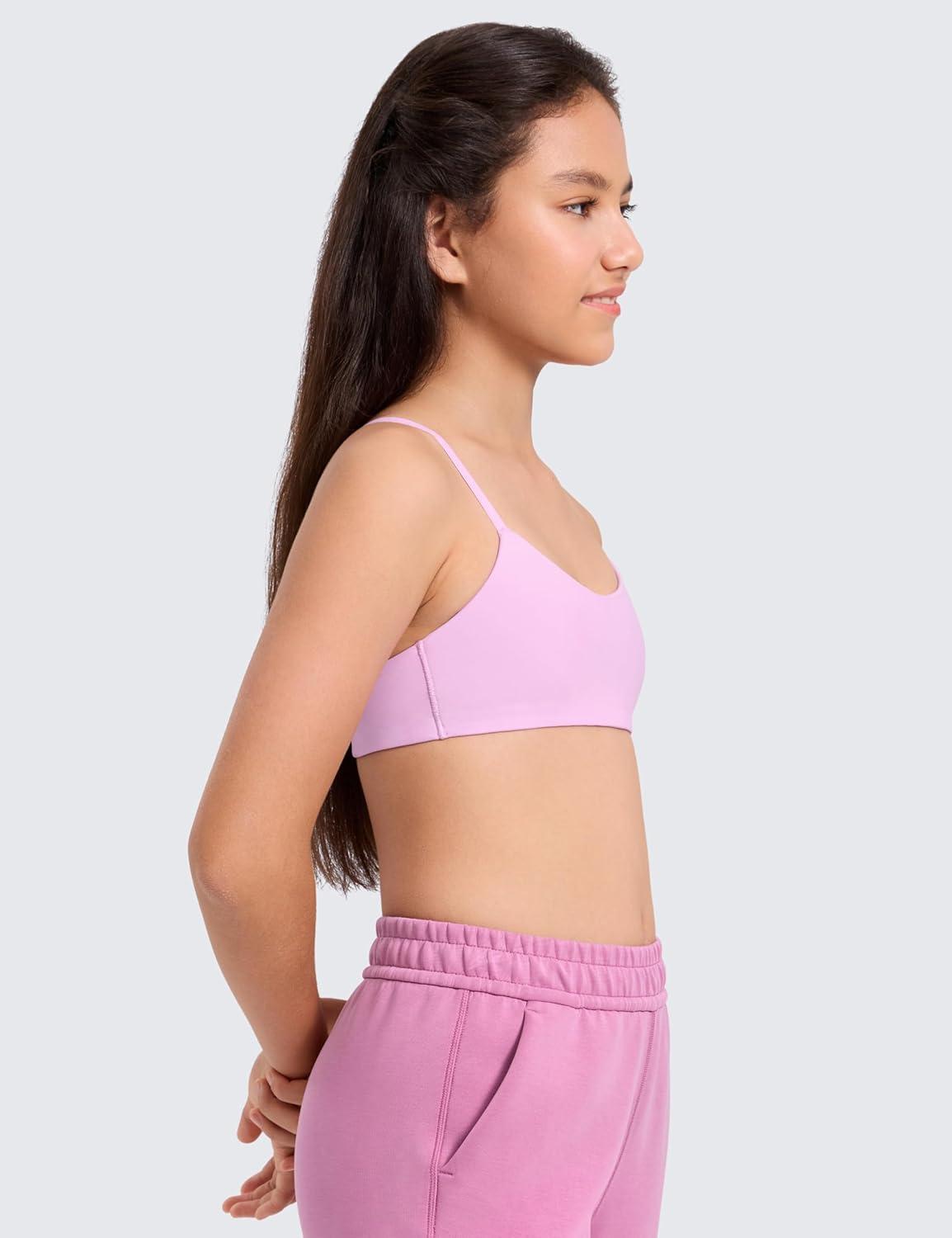 imageCRZ YOGA Girls Softness Mold Softhold Training Bra  Casual Everyday Tops V Neck Adjustable Straps Kids TeenVita Pink