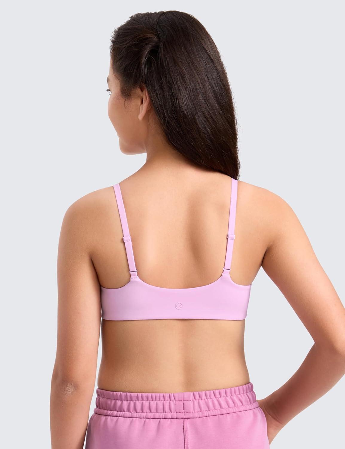 CRZ YOGA Girls Softness Mold Softhold Training Bra - Casual Everyday Tops V Neck Adjustable Straps Kids Teen(Vita Pink)