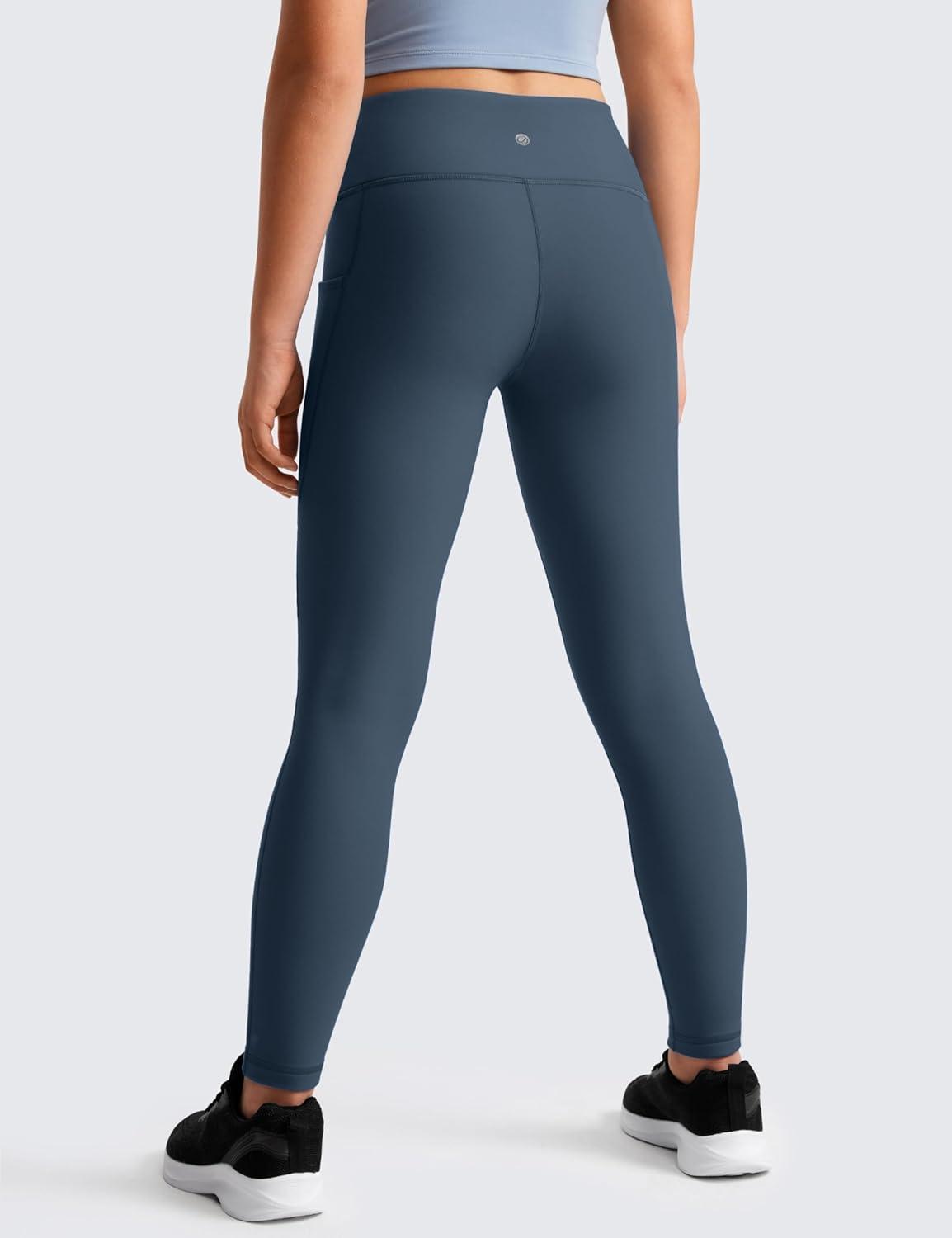 CRZ YOGA Girls Thermal Fleece Lined Athletic Leggings Water Resistant High Waist Warm Winter Kids Lounge Pants Side Pockets(Stelindigo)