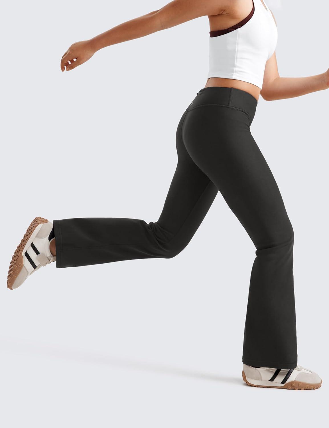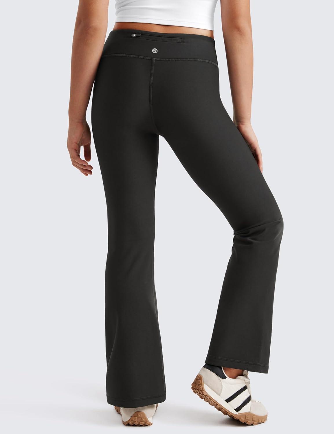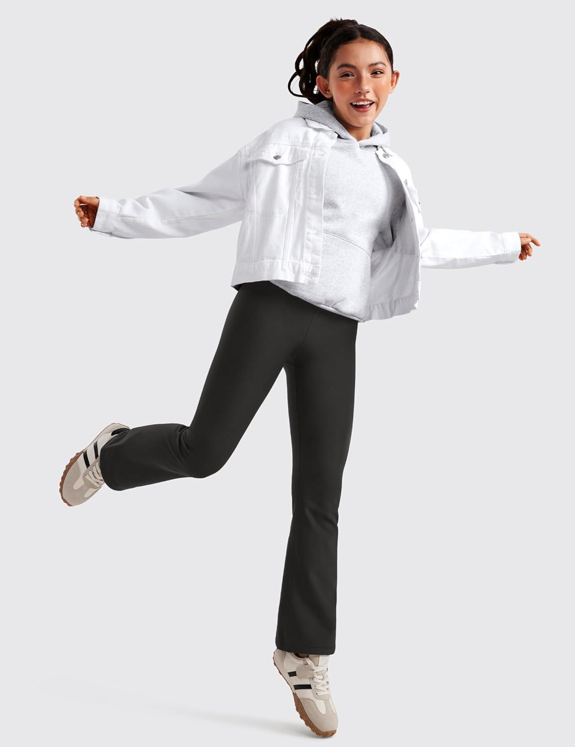 CRZ YOGA Girls Thermal Fleece Lined Flare Leggings Winter Warm Water Resistant Kids Bell Bottoms High Waist Pants Lounge Yoga(Melanite)
