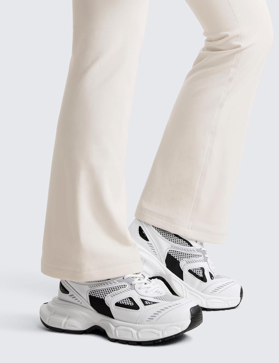 CRZ YOGA Girls Thermal Fleece Lined Flare Leggings Winter Warm Water Resistant Kids Bell Bottoms High Waist Pants Lounge Yoga(Milky White (Bone))