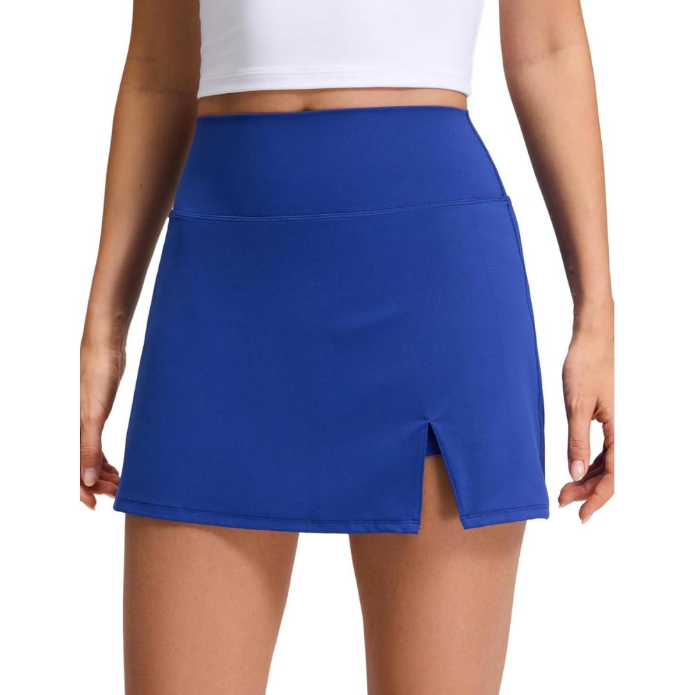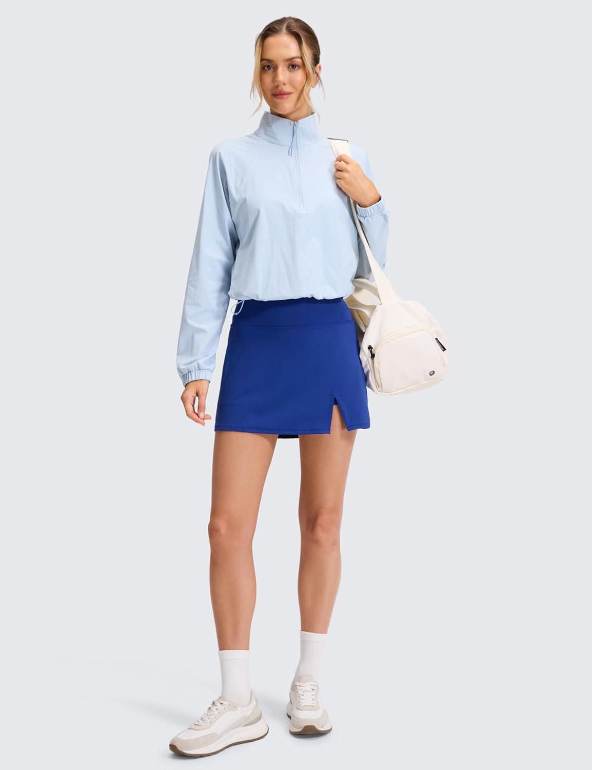 CRZ YOGA High Rise Front Slit Golf Skirts for Women – Mini A-line Tennis Casual Skort with Built-in Shorts Side Pockets(Waves Blue)